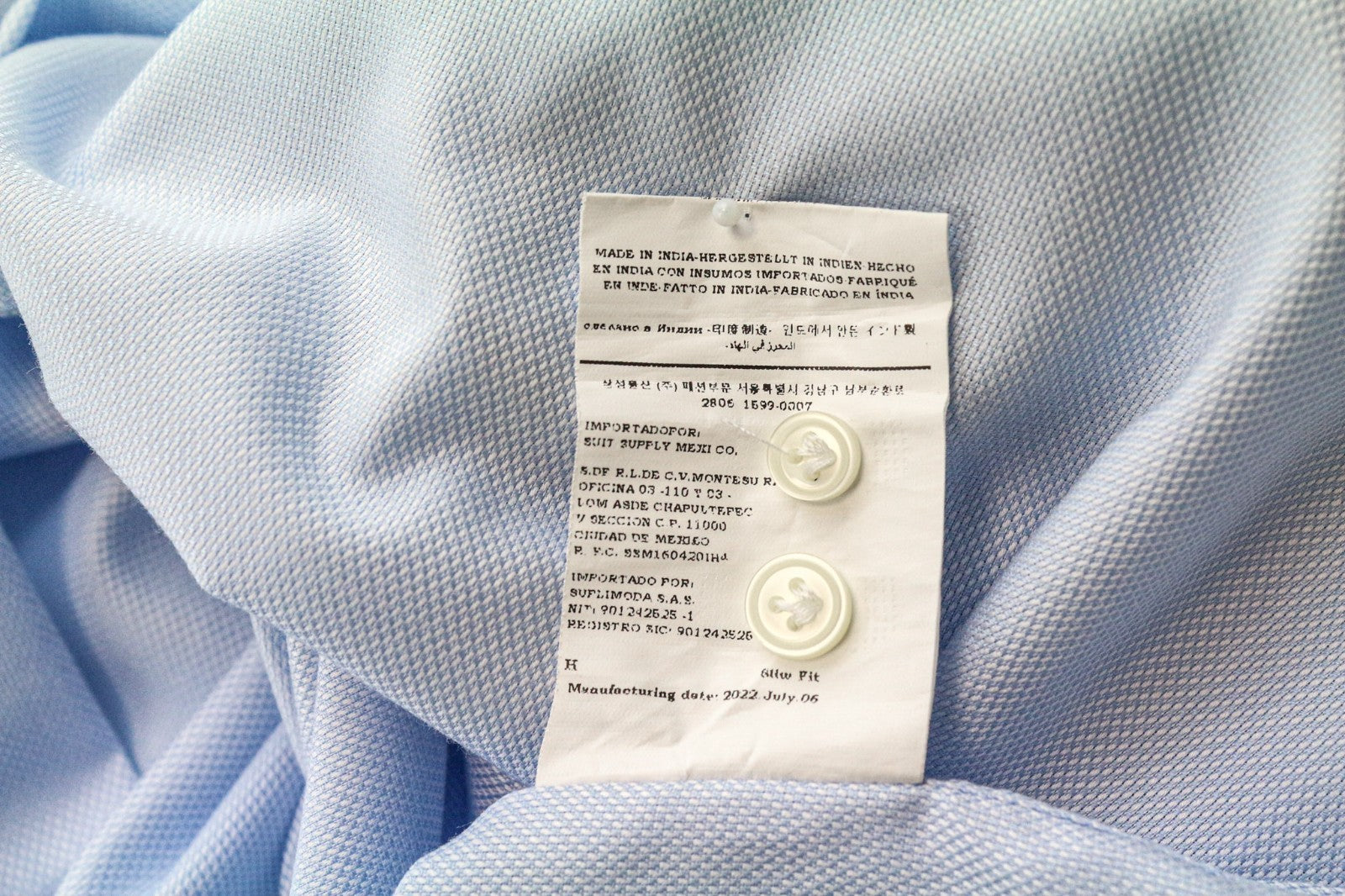 SUITSUPPLY Men's Formal Shirt 40/15.75 Slim Blue Pure Cotton Twill Cutaway