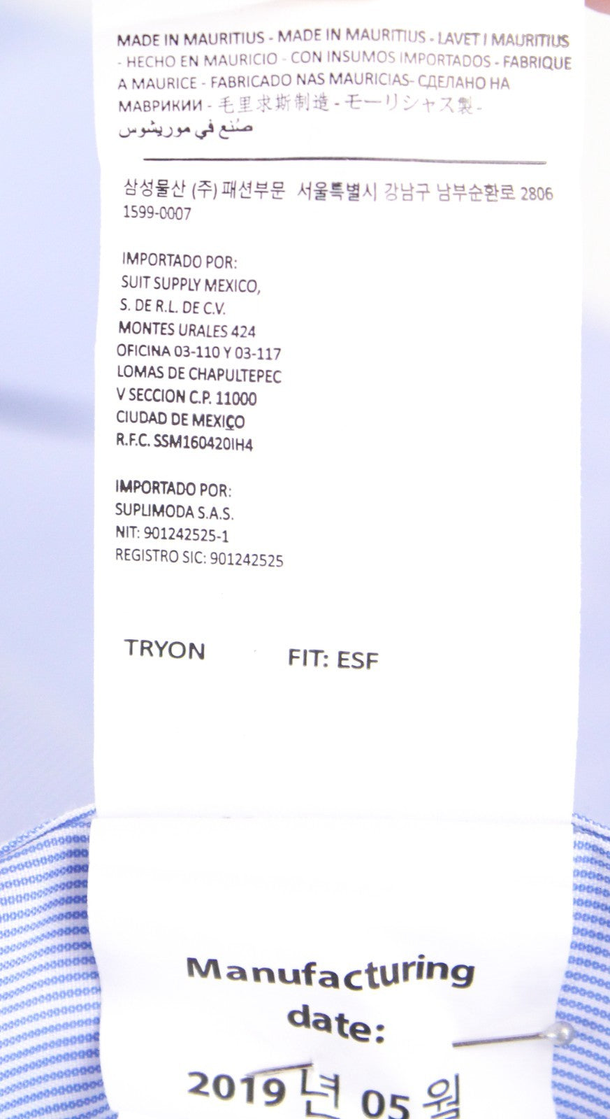 SUITSUPPLY Men's Formal Shirt 42-7/16.5L Blue Striped Pure Cotton Slim Button-Up