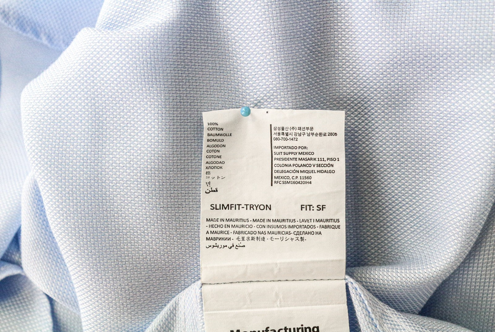 SUITSUPPLY Men's Formal Shirt 43-7/17L Slim Blue Cotton Button-Up Long Sleeve