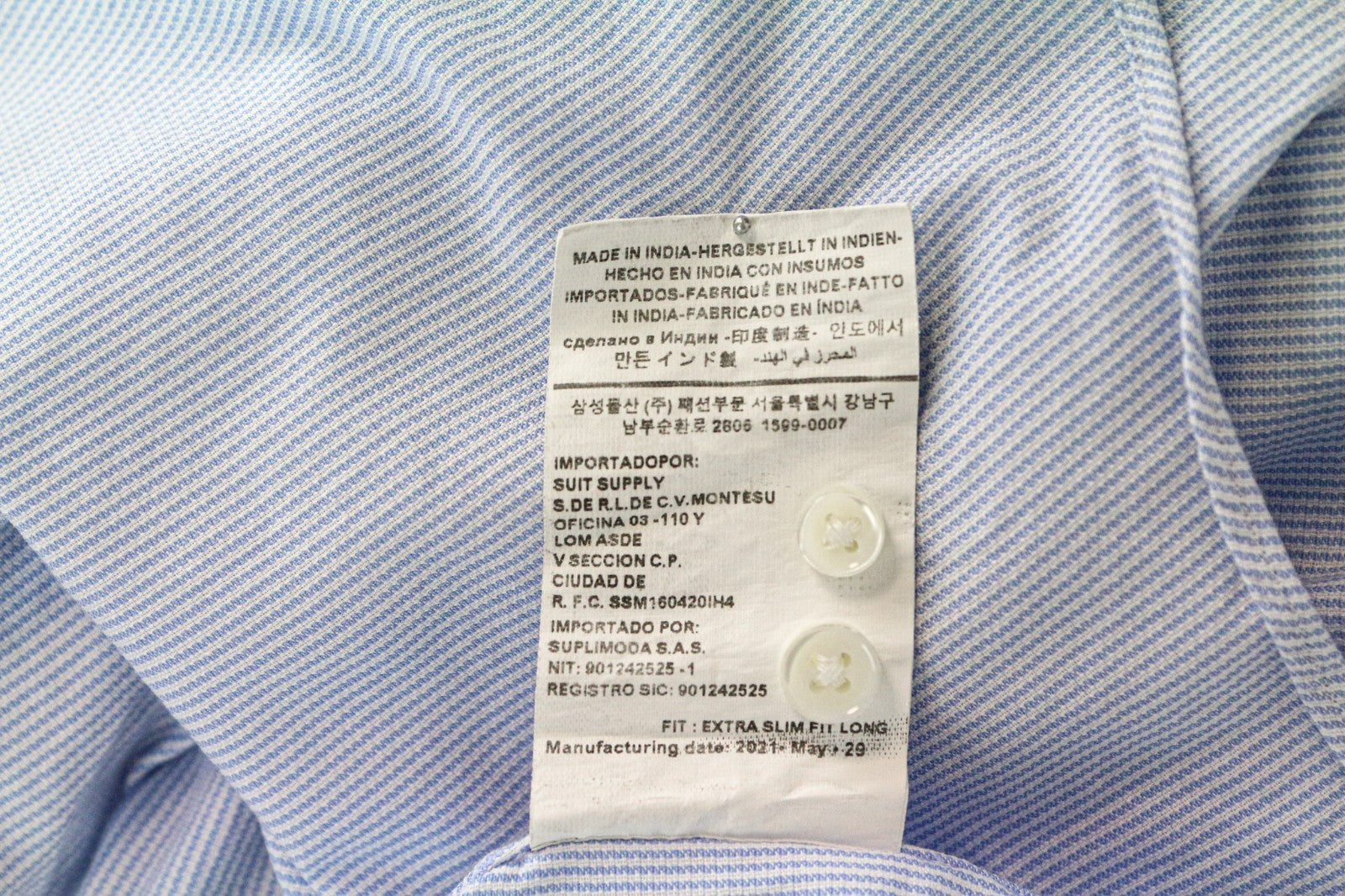 SUITSUPPLY Men's Formal Shirt 43L/17L Blue Extra Slim Striped Cotton