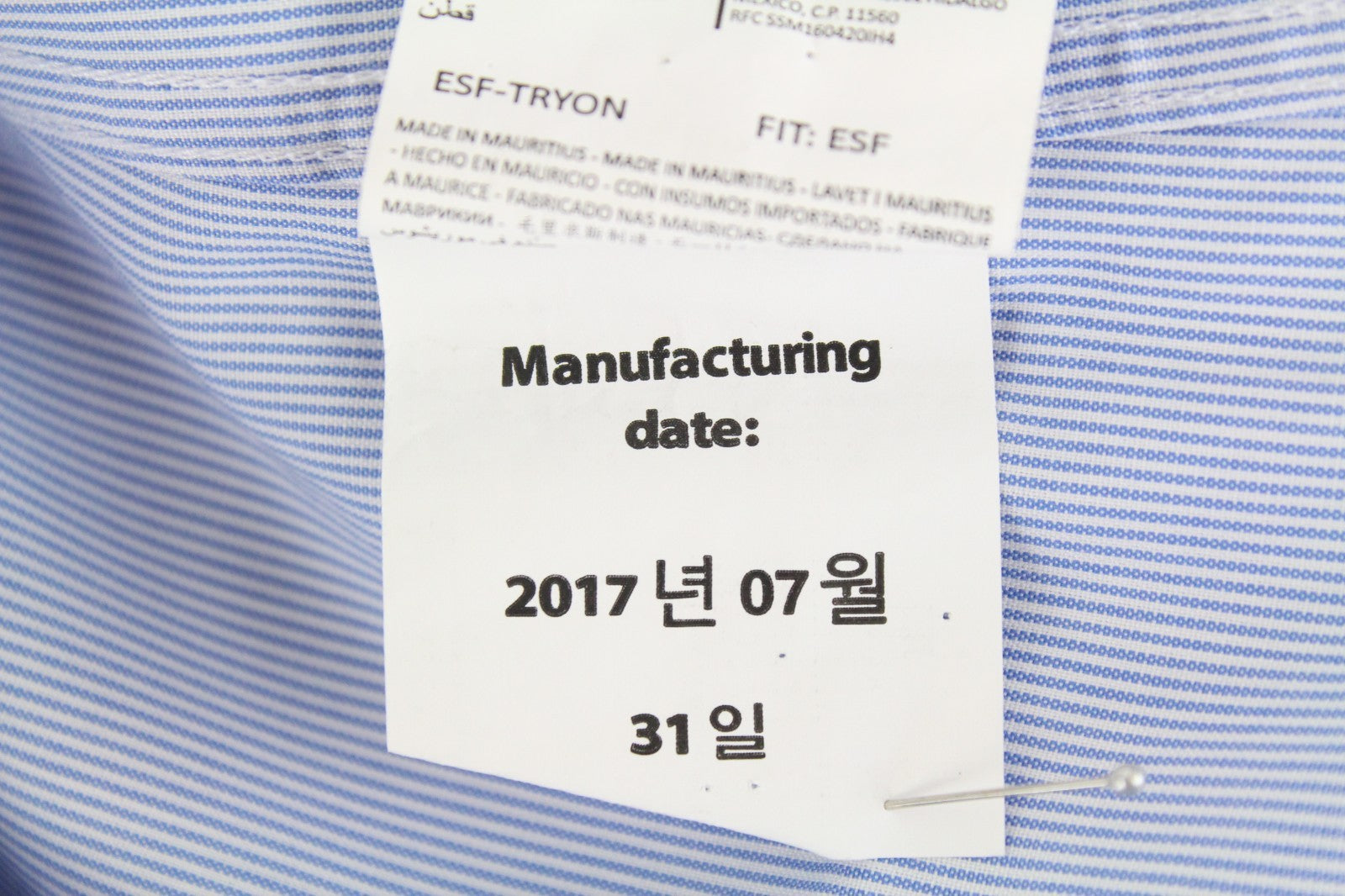 SUITSUPPLY Men's Formal Shirt 44/17.5 Blue Striped Pure Cotton Extra Slim Long