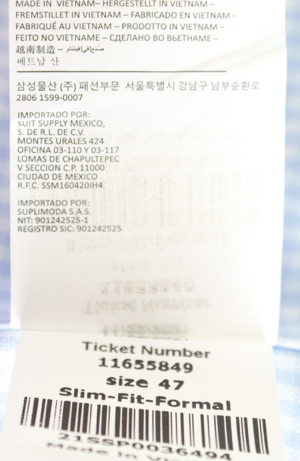 SUITSUPPLY vyriški formalūs marškinėliai 47 mėlyni, ploni, languoti, ilgomis rankovėmis, grynos medvilnės
