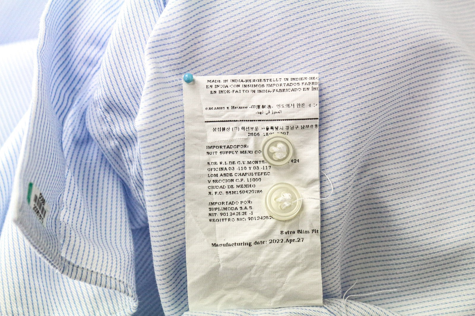 SUITSUPPLY Men's Shirt 42/16 1/2 Extra Slim Blue Striped Pure Cotton Cutaway