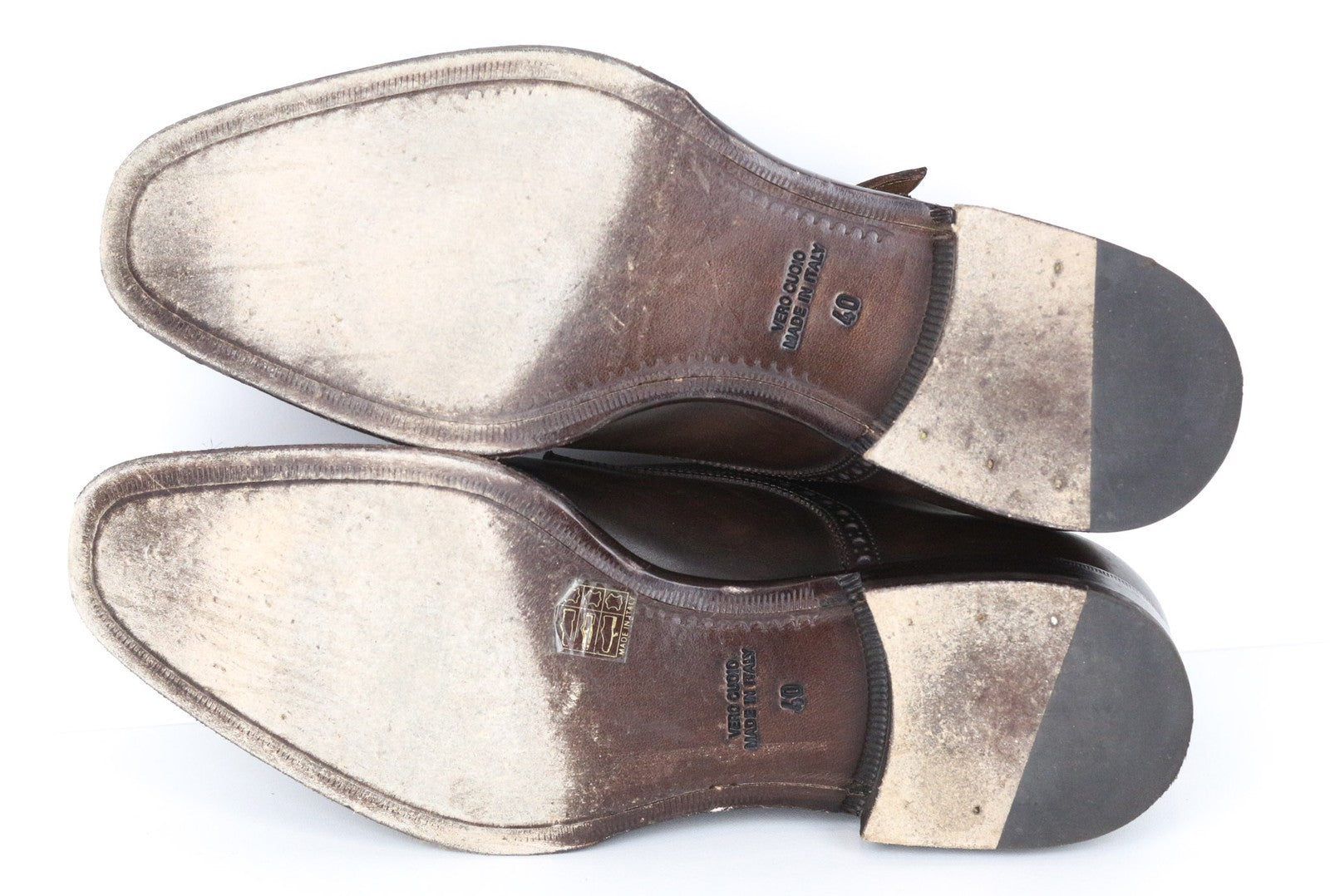 SUITSUPPLY Men's Shoes EU40 Brown Double Monk Strap Brogue Calf Leather Formal
