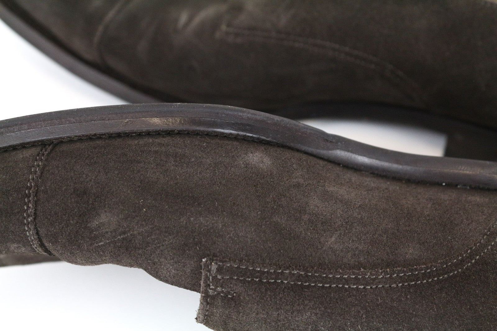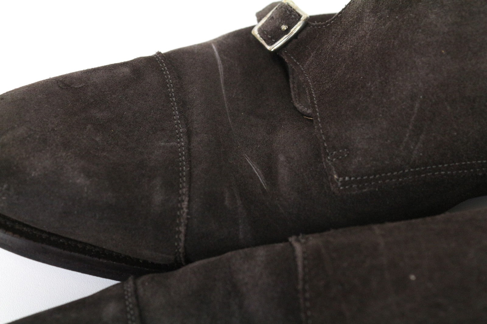 SUITSUPPLY vyriški batai, EU43, tamsiai rudi, zomšiniai, odiniai, dvigubais dirželiais, formalūs