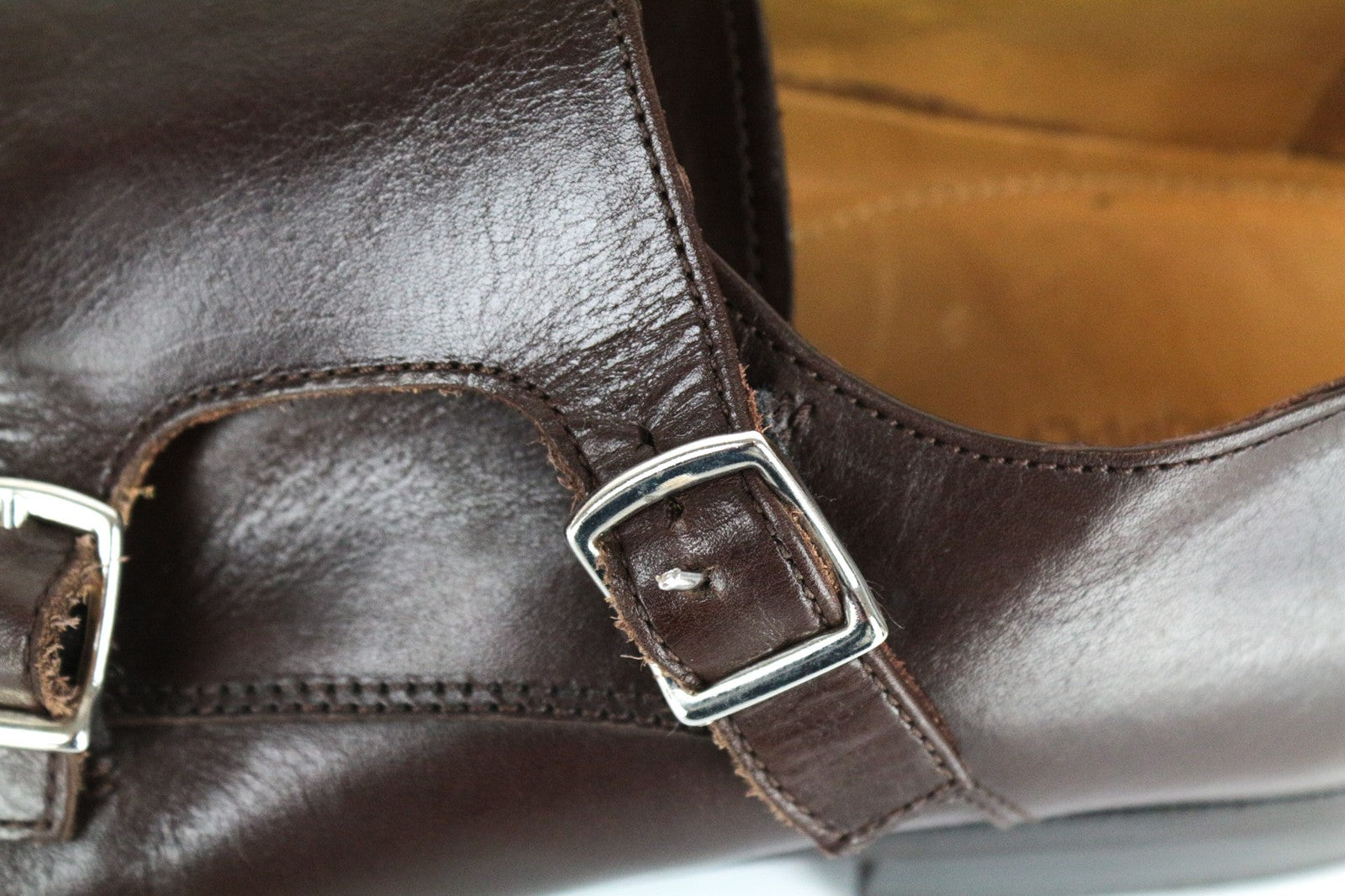 Used. Scratched soles. Wrinkles, scratches and imprints. Rubbed off buckles. Please see added photos.