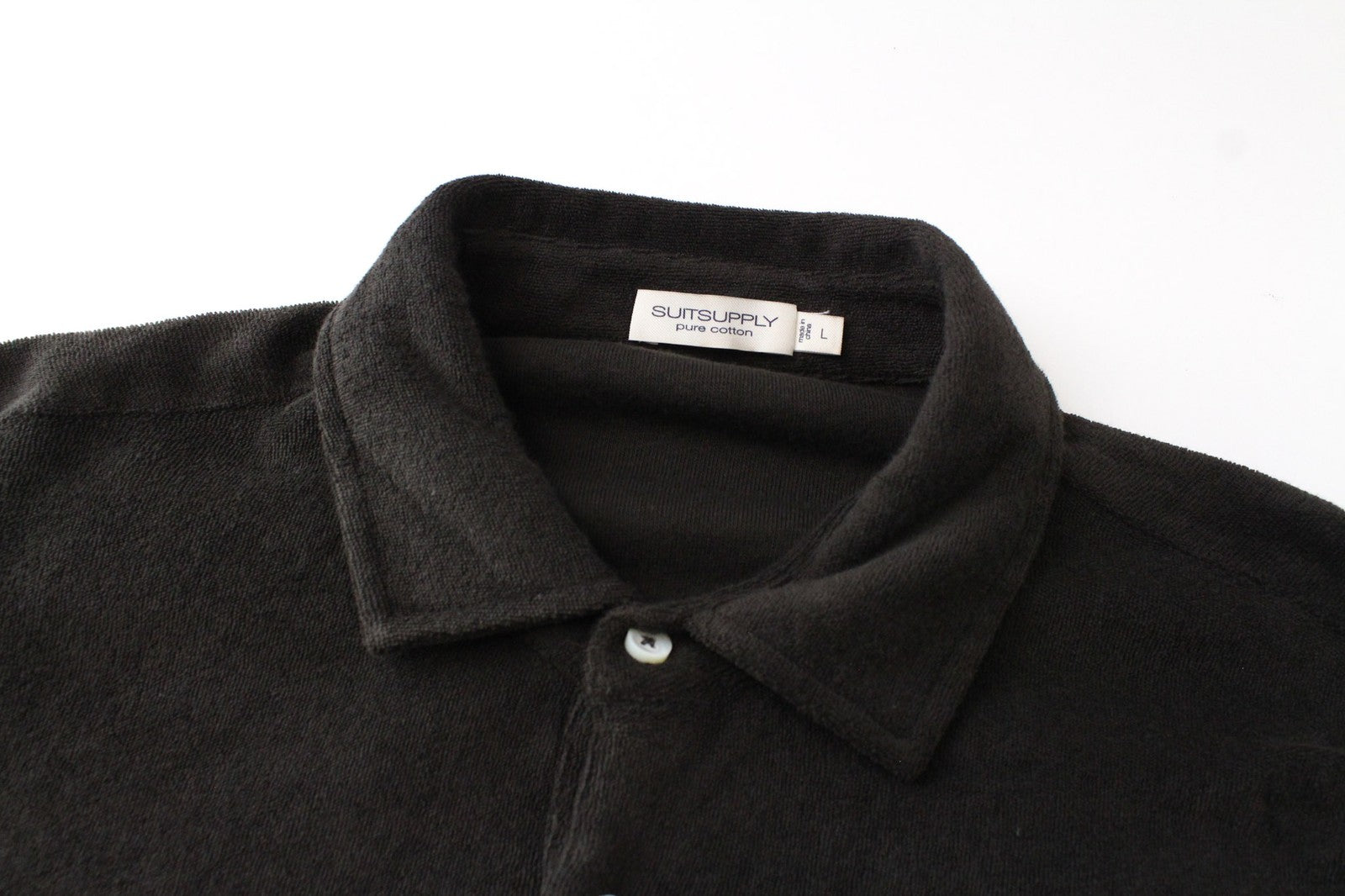 SUITSUPPLY vyriški išskleidžiami marškiniai L dydžio tamsiai rudi medvilniniai kilpiniai ploni marškiniai