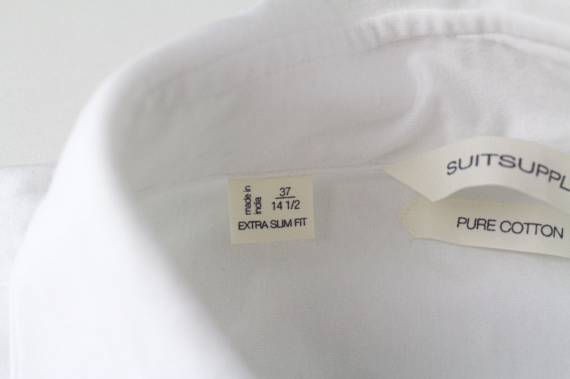 SUITSUPPLY vyriški išskleidžiami marškinėliai, 37/14.5, ypač ploni, balti medvilniniai polo marškinėliai
