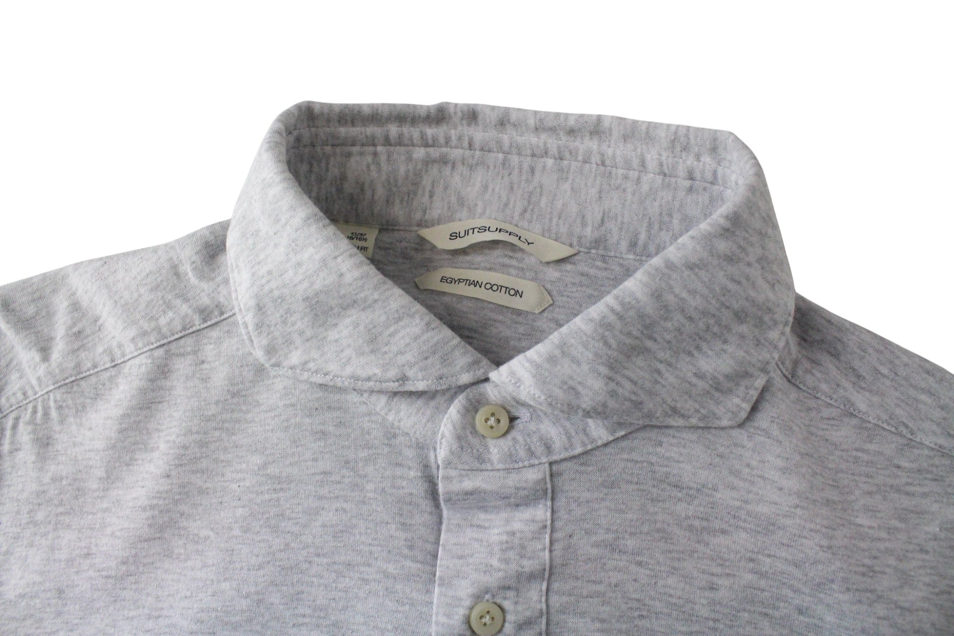 SUITSUPPLY vyriški išskleidžiami marškinėliai 41/42/16/16.5 pilki ploni polo marškinėliai iš medvilnės