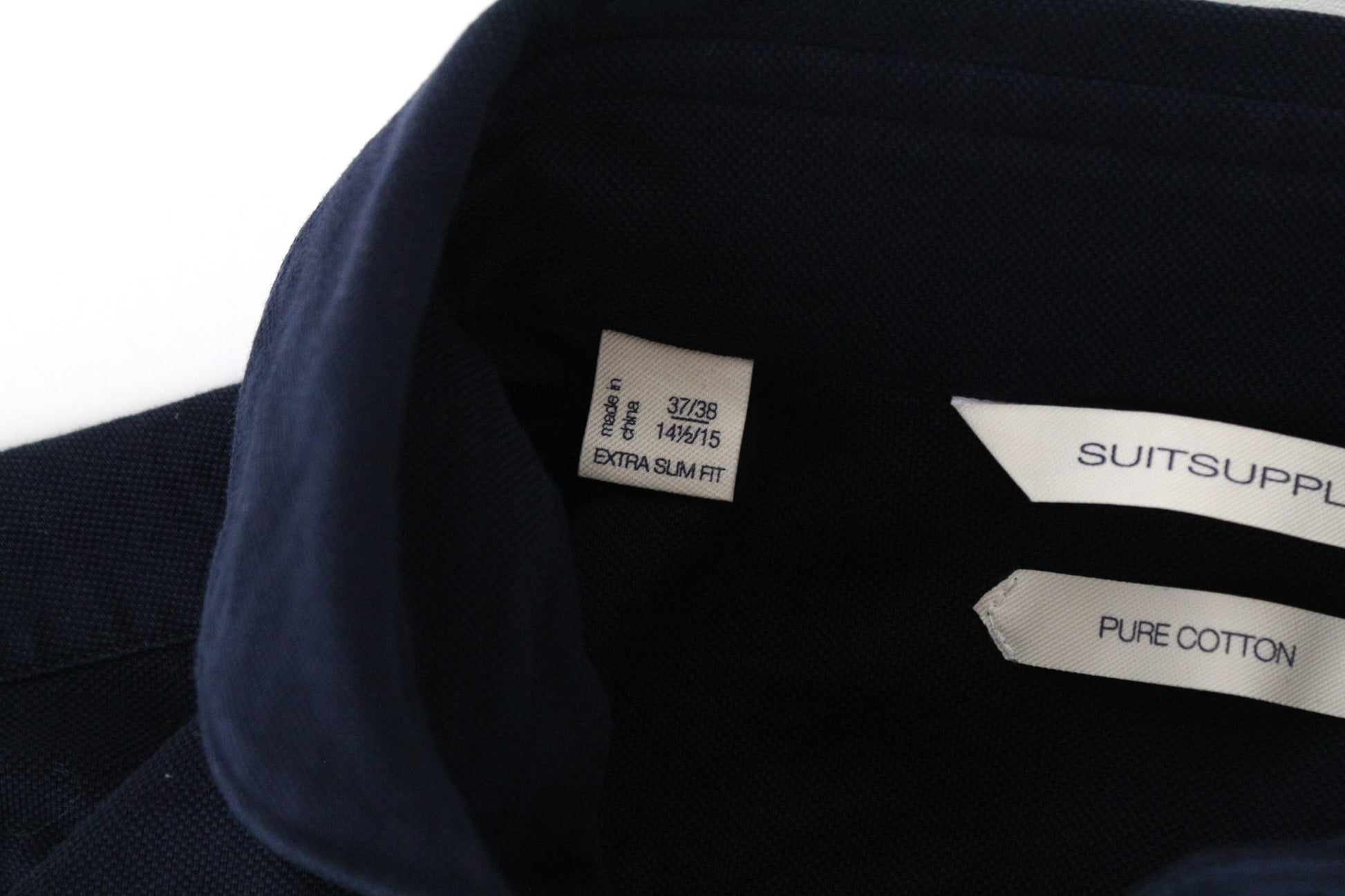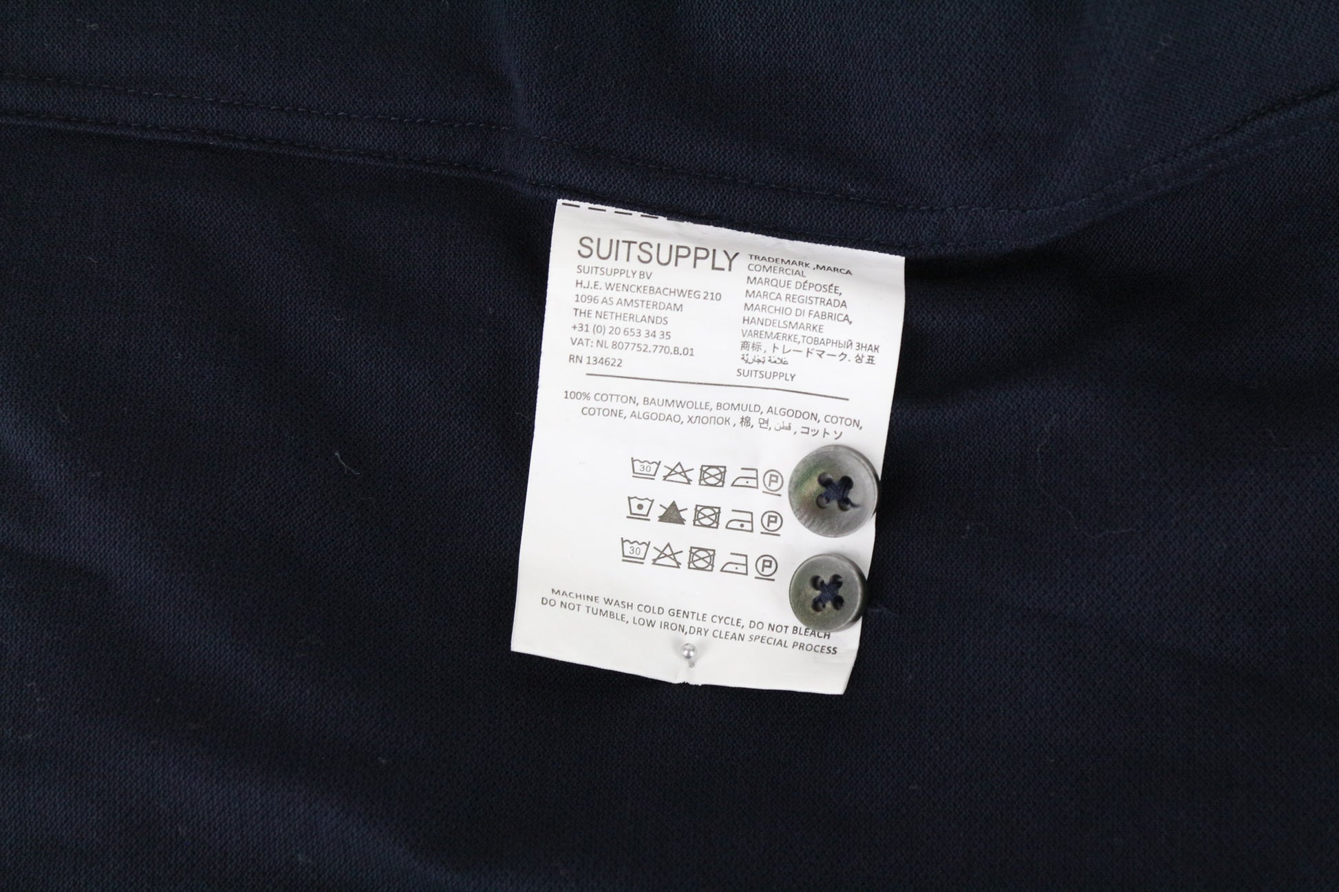 SUITSUPPLY vyriški marškinėliai 37/38/14.5/15 ypač ploni polo marškinėliai iš tamsiai mėlynos spalvos grynos medvilnės