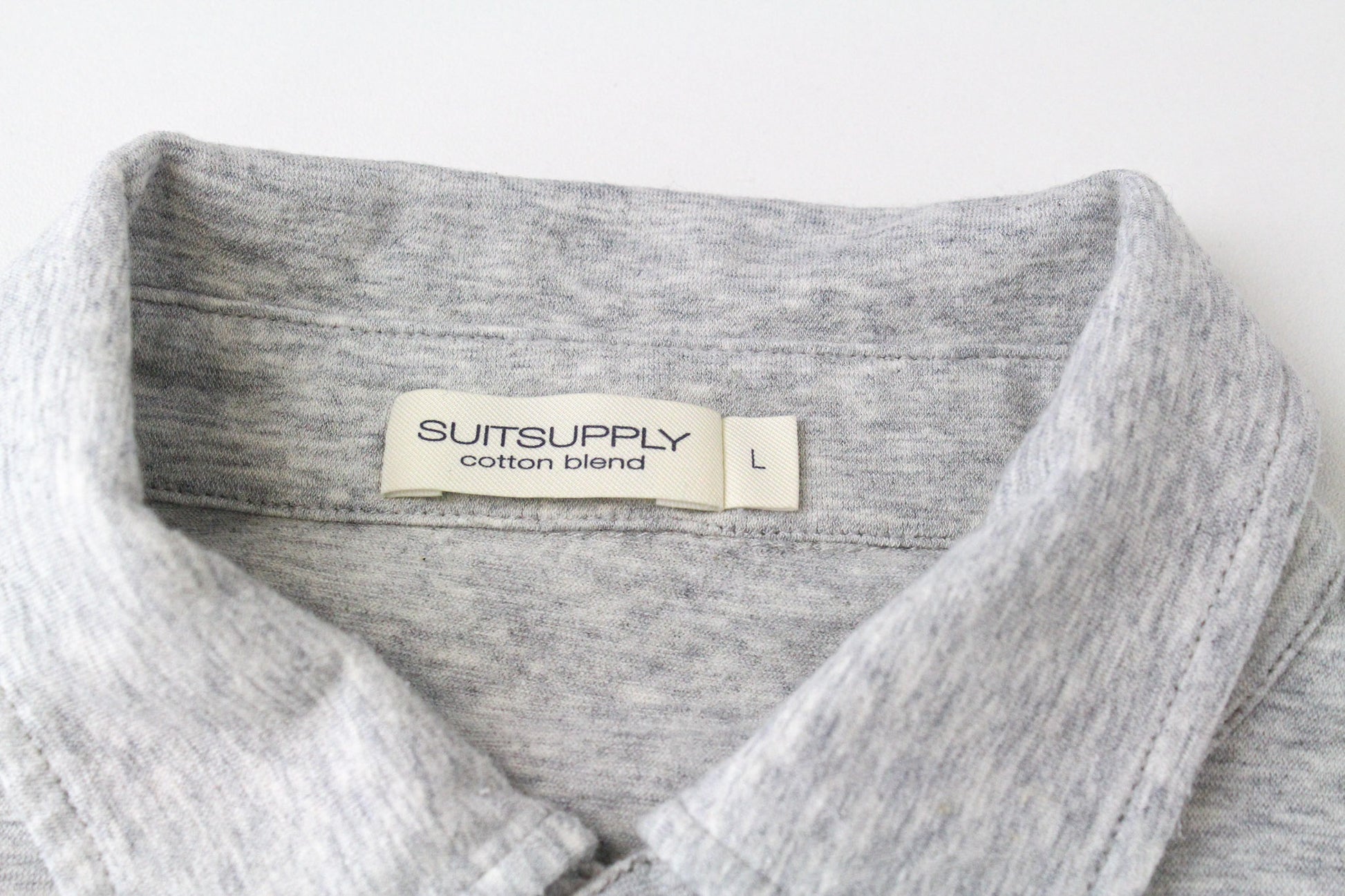 SUITSUPPLY Men's T-Shirt L Grey Polo Cotton Cashmere Cutaway Long Sleeve Casual