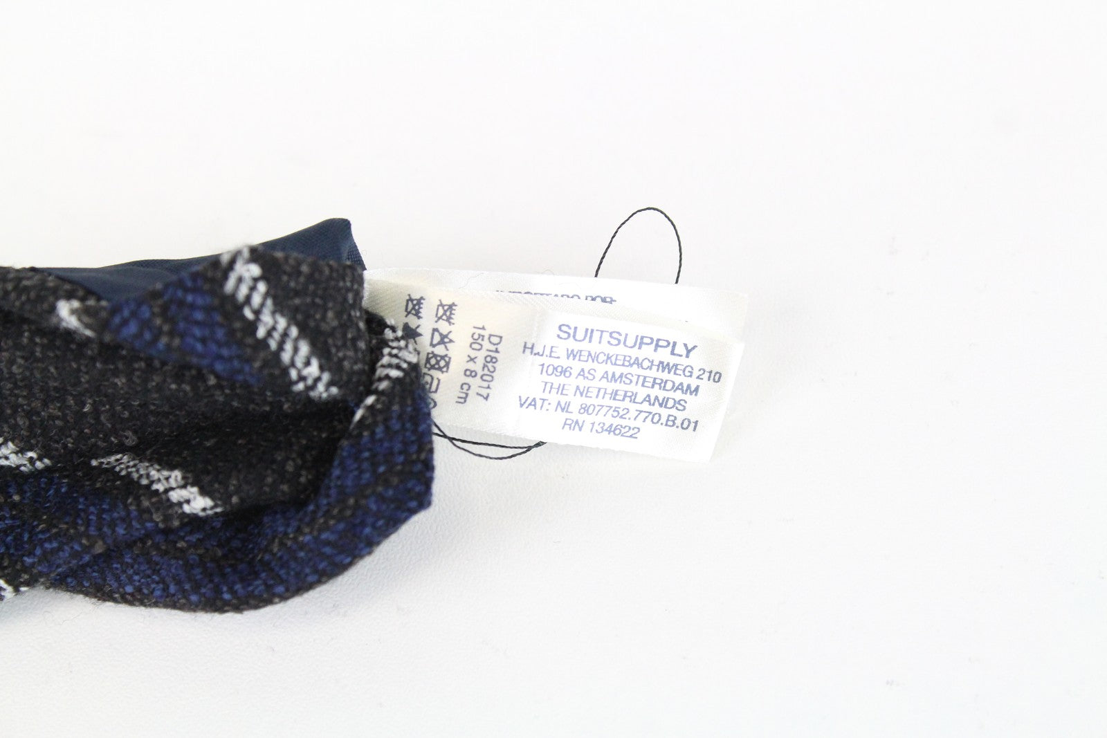 SUITSUPPLY vyriškas kaklaraištis 150 x 8 cm pilkai mėlynas vilnonis šilkas dryžuotas smailiu galu klasikinis
