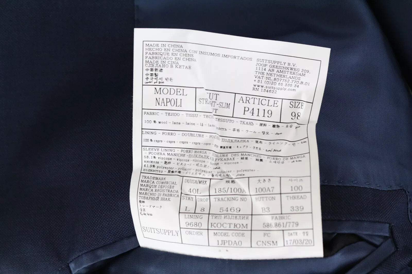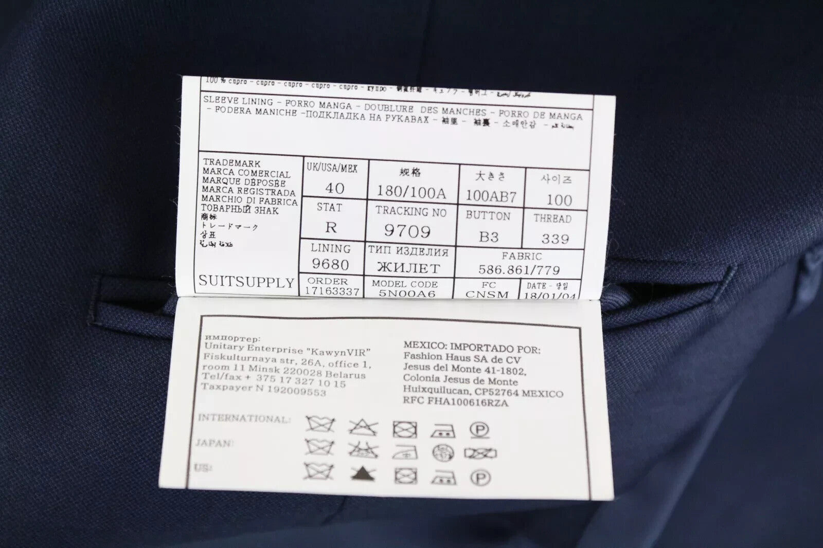 SUITSUPPLY Napoli Men Suit UK40L Super 110's Navy Wool Blazer & Waistcoat