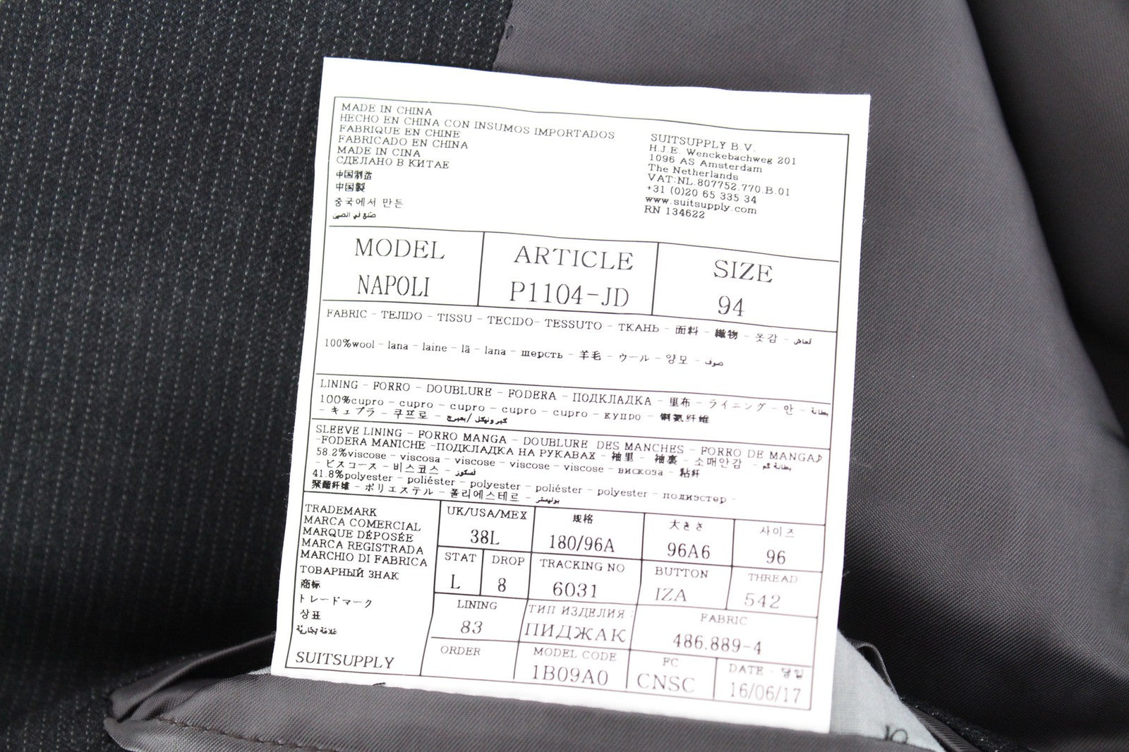 „SUITSUPPLY Napoli“ vyriškas pilkas vilnonis dryžuotas švarkas „Super 110's“, 38L dydis