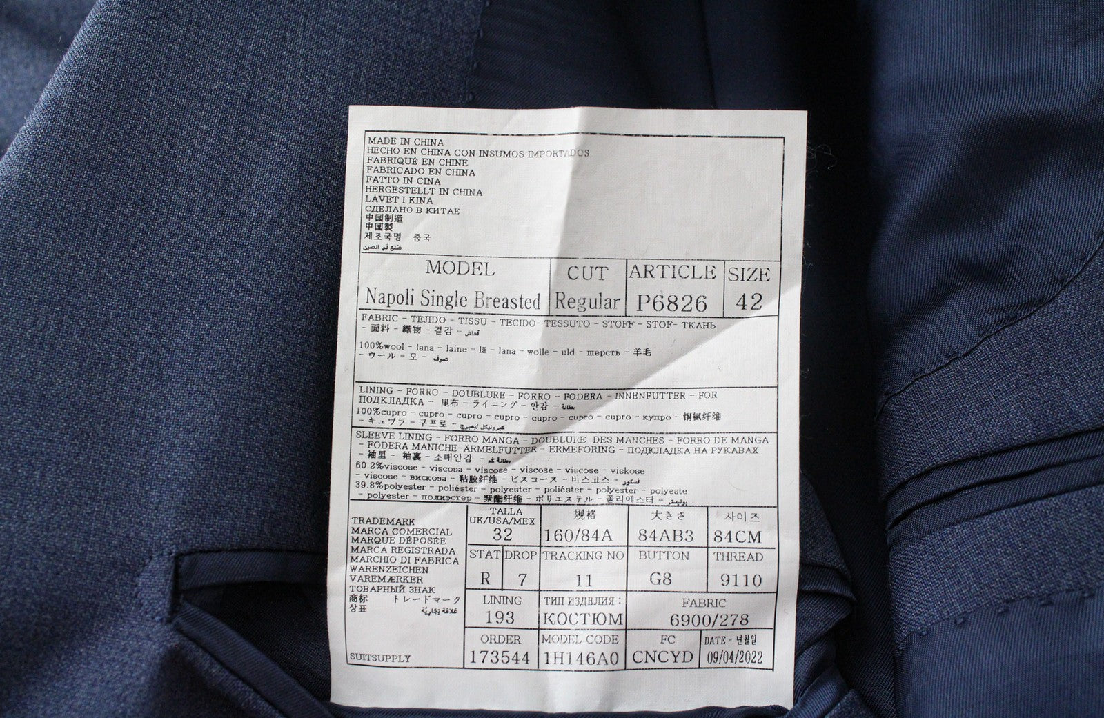 SUITSUPPLY Napoli Men's Suit UK32R Blue 2Pc Traceable Wool S110s Slim Melange