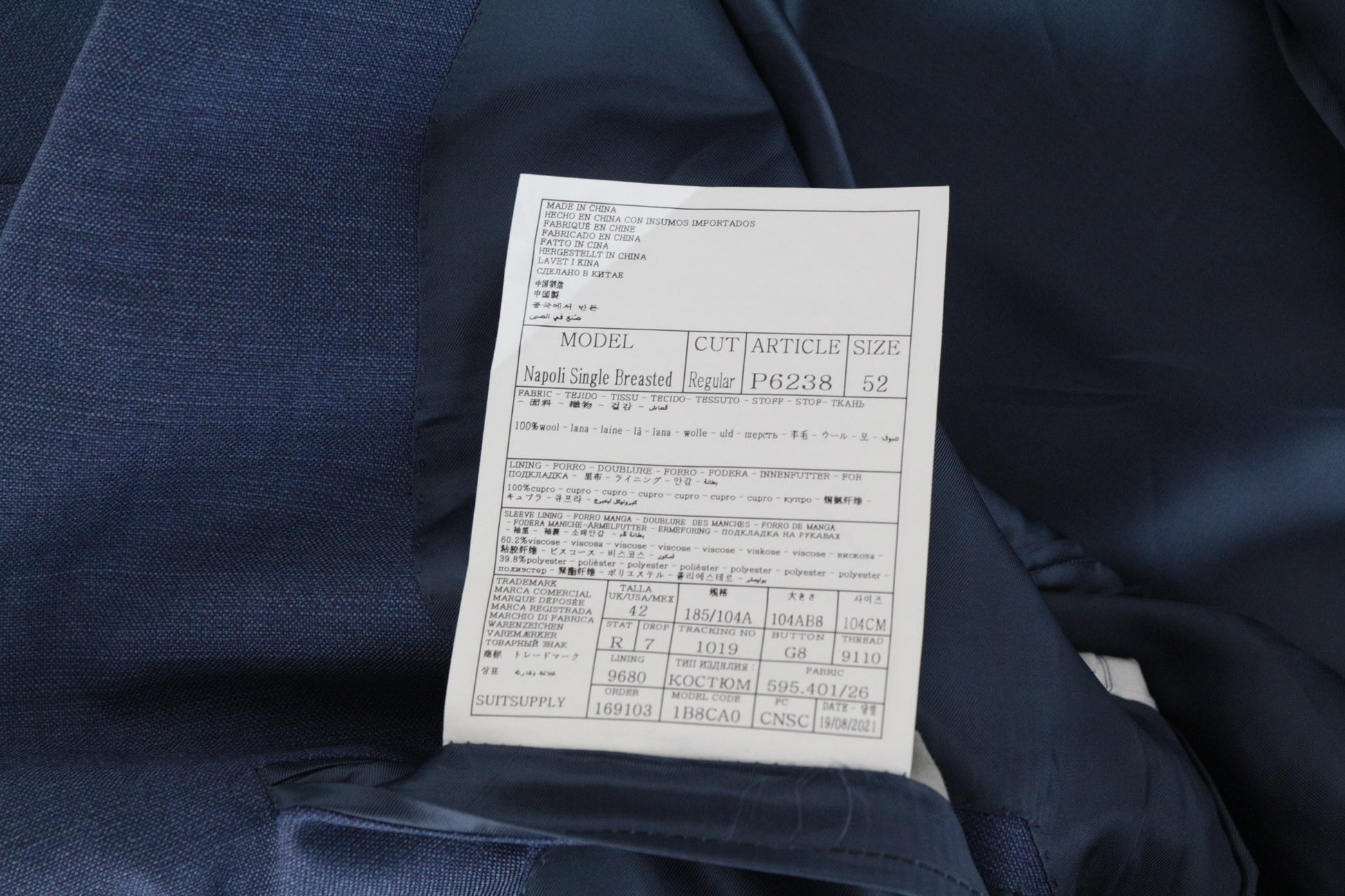 SUITSUPPLY Napoli Men's Suit UK42R Blue Wool Single-Breasted 2-Piece Lined