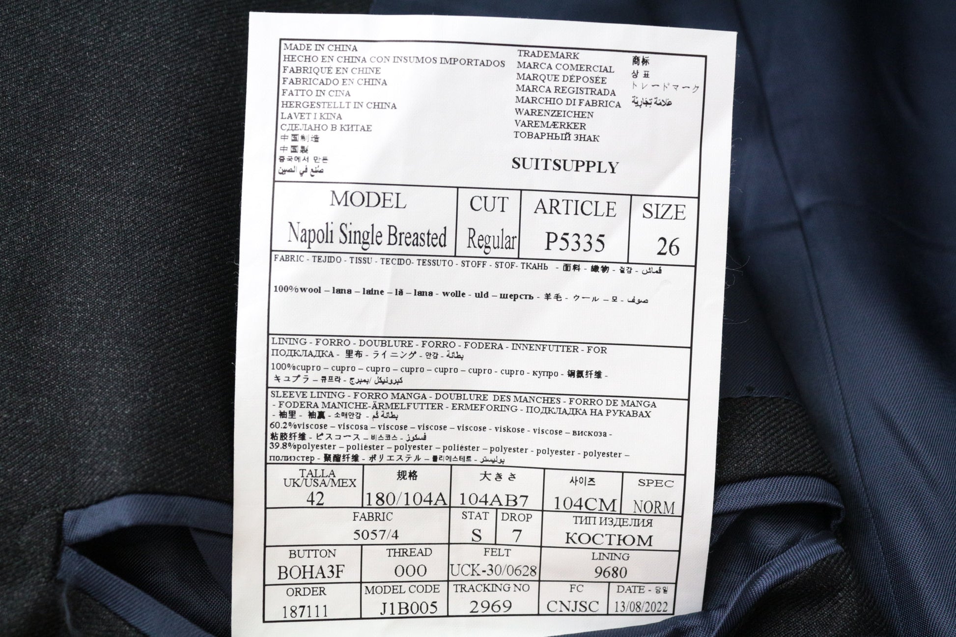SUITSUPPLY Napoli Men's Suit UK42S Grey Melange 3Pc Wool Formal Slim