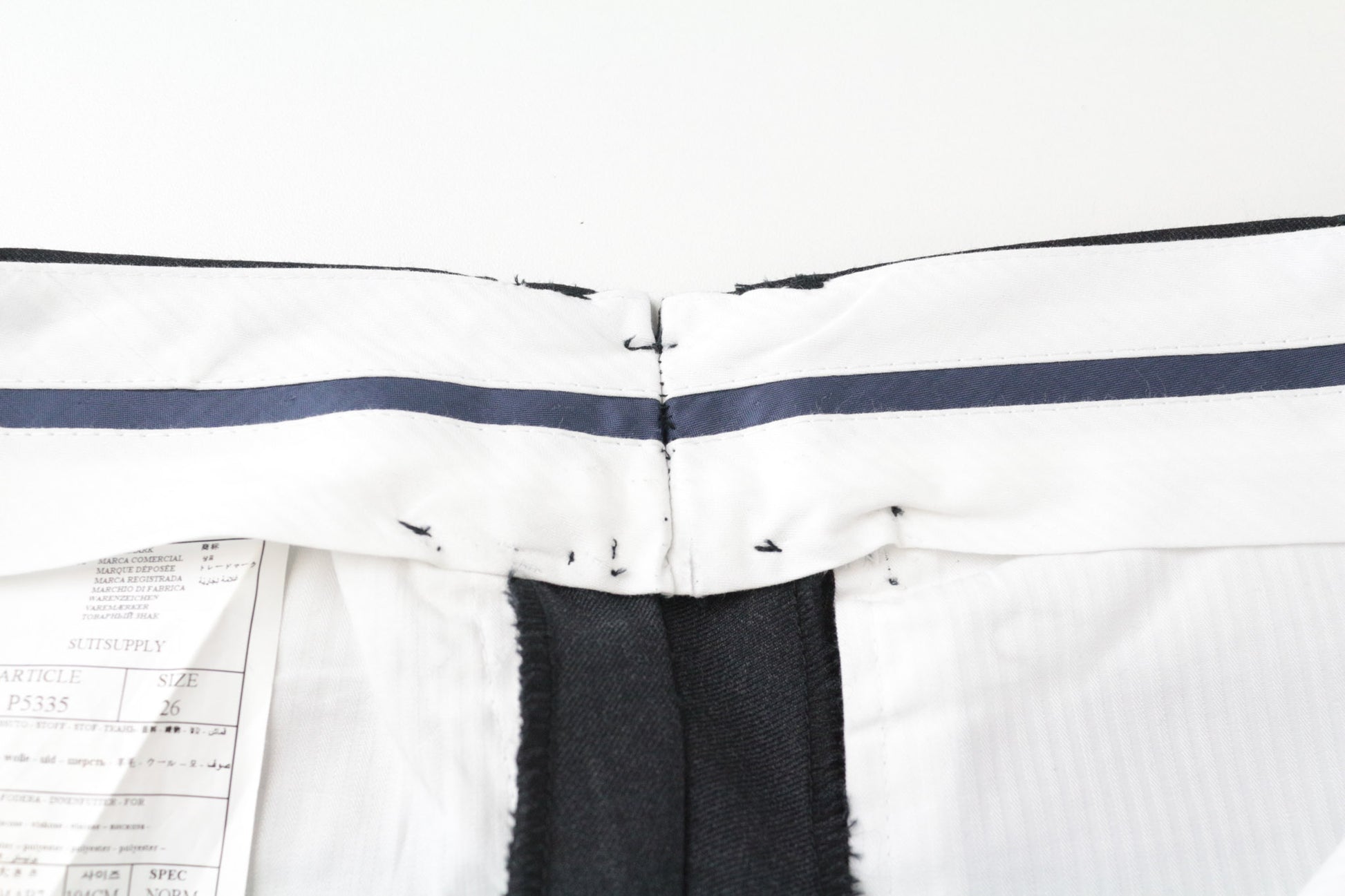 Used. Altered trousers' length, waistline width and around the crotch area. Stained on the trousers' inside. Please see added photos.