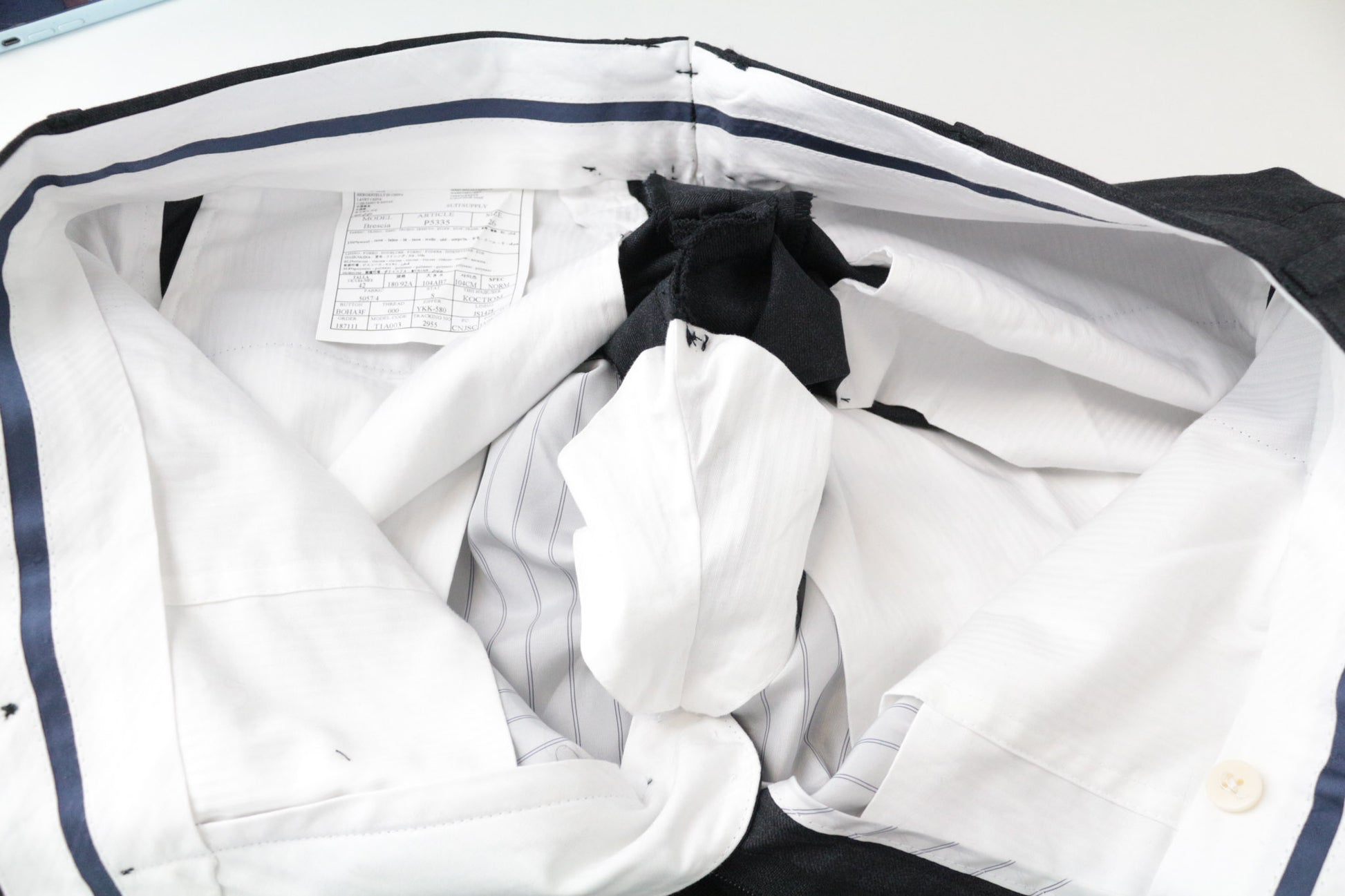 Būklė: Used. Altered trousers' length, waistline width and around the crotch area. Stained on the trousers' inside. Please see added photos.