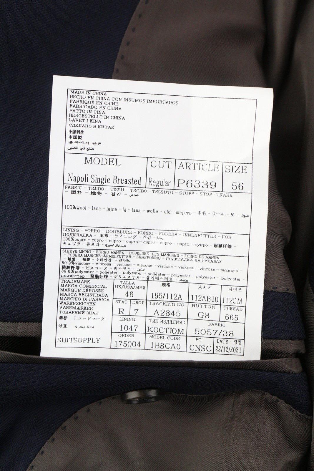„SUITSUPPLY Napoli“ vienaeilis vyriškas švarkas UK46R mėlynas grynos vilnos atlapas su įpjova