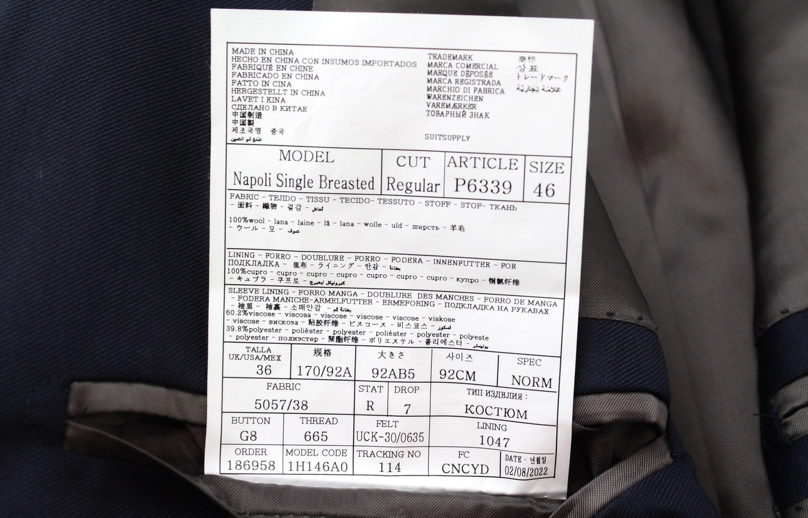 SUITSUPPLY Napoli Suit UK36R Men's Blue Wool 2-Piece Classic Twill Look