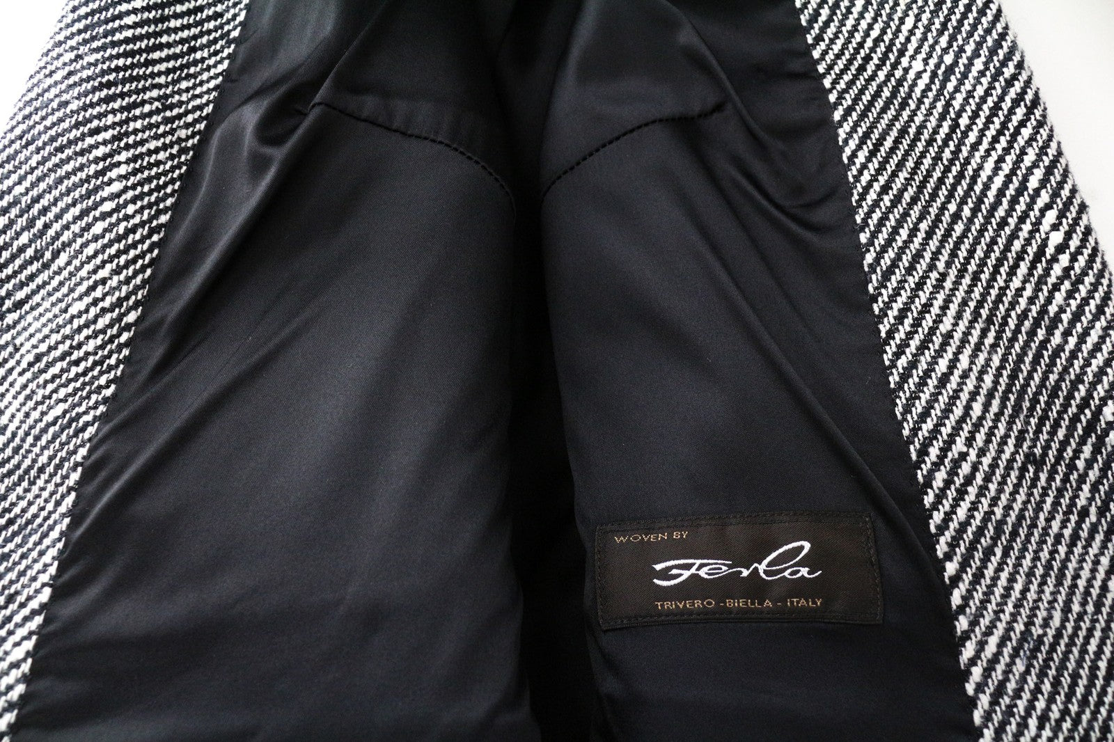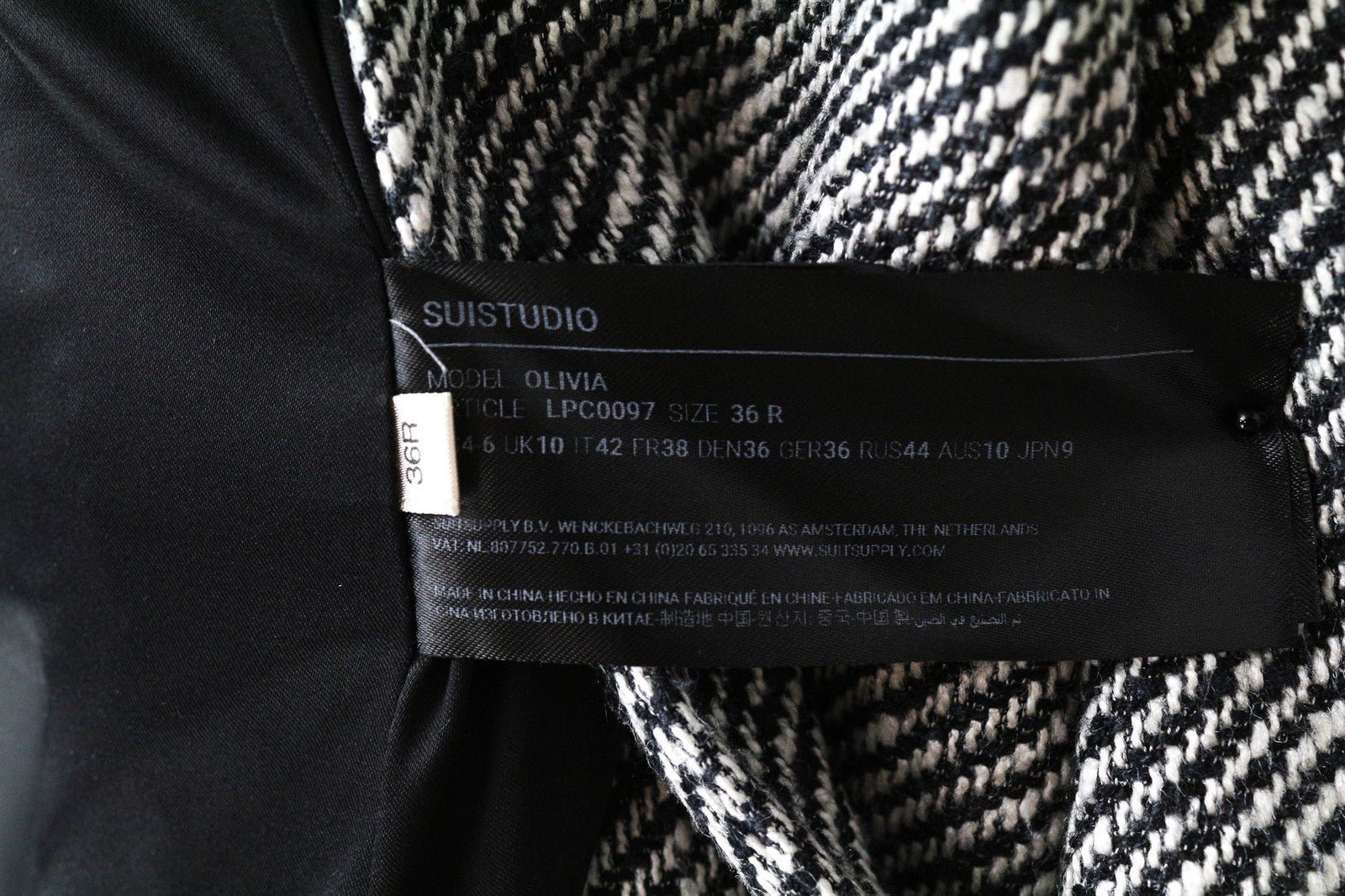„SUITSUPPLY Olivia“ moteriškas pilkas šilkinis medvilninis švarkas su vieneiliu raštu, UK10R dydis