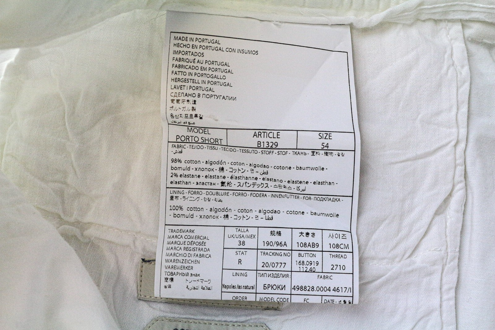 SUITSUPPLY Porto vyriški šortai, UK38R, balti, tamprios medvilnės vasarinės kelnės plokščiu priekiu