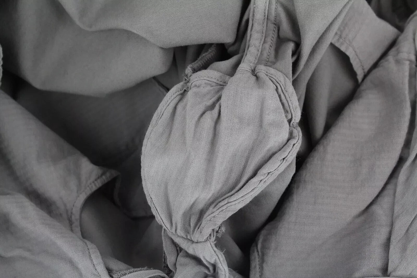 SĄLYGA: Used. Mended waistline and inner trousers' lining around the crotch area. Tears in the inside, threads on both legs. Please see added photos.