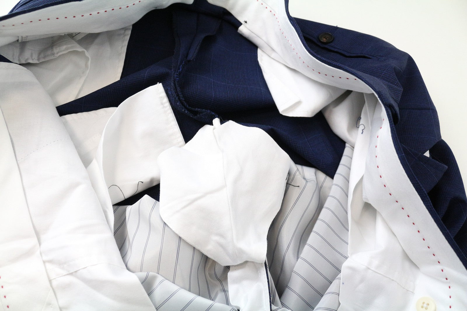 SUITSUPPLY Sienna Men Trousers UK44S Pure Wool Blue Pleated Checked Pattern
