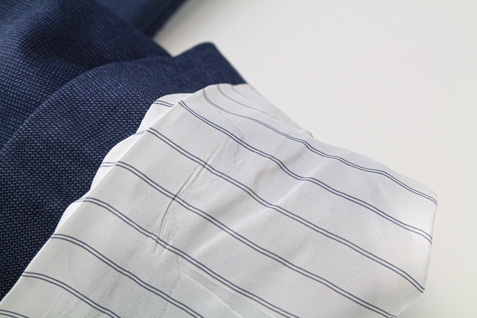„SUITSUPPLY Sienna“ vyriškas mėlynas languotas vilnonis švarkas su UK38S raštu, klasikinio stiliaus, mėlynas