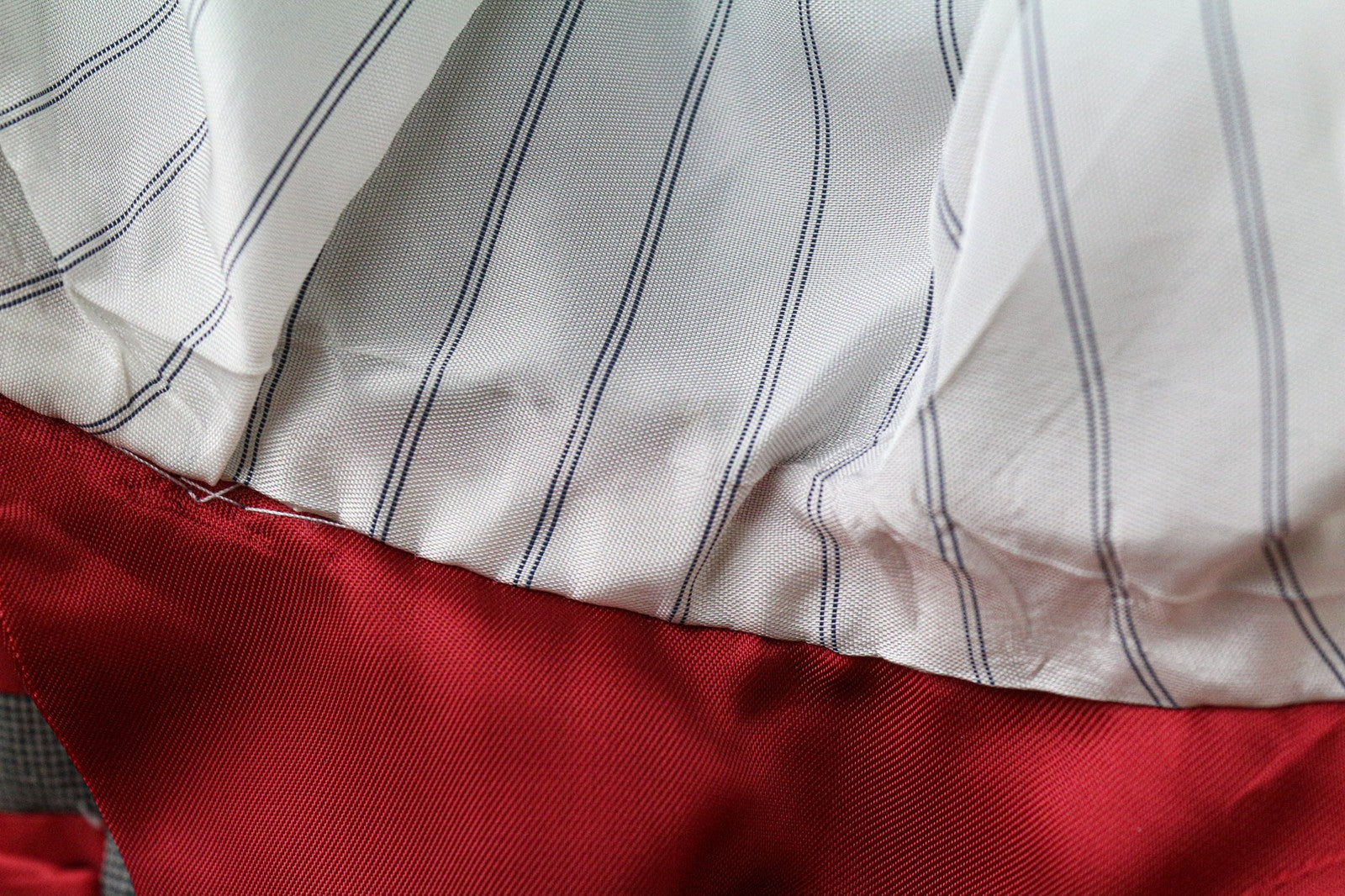 Dėmės nugaroje ir pamušaloje, įplyšimai priekyje ir apykaklėje. Dėmėta dešinės pažasties srityje. Žr. pridėtas nuotraukas.