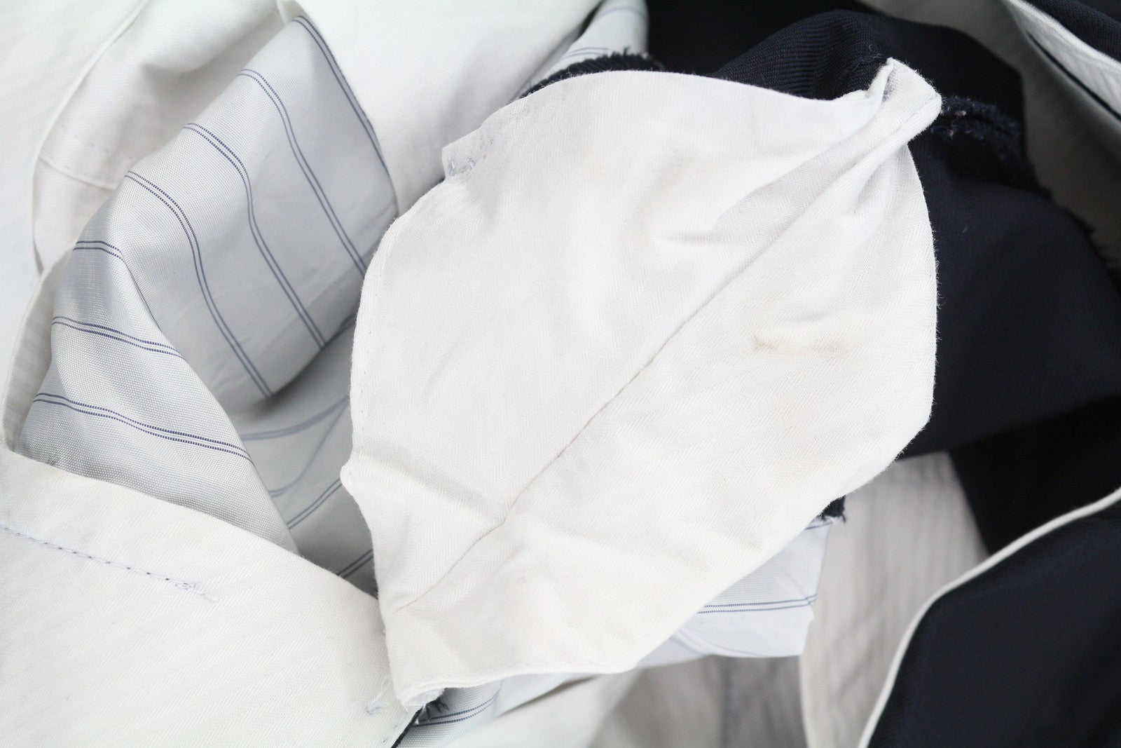 Kelios vietos dėmės. Medžiaga šiek tiek pasitrynusi ties juosmeniu. Žr. pridėtas nuotraukas.