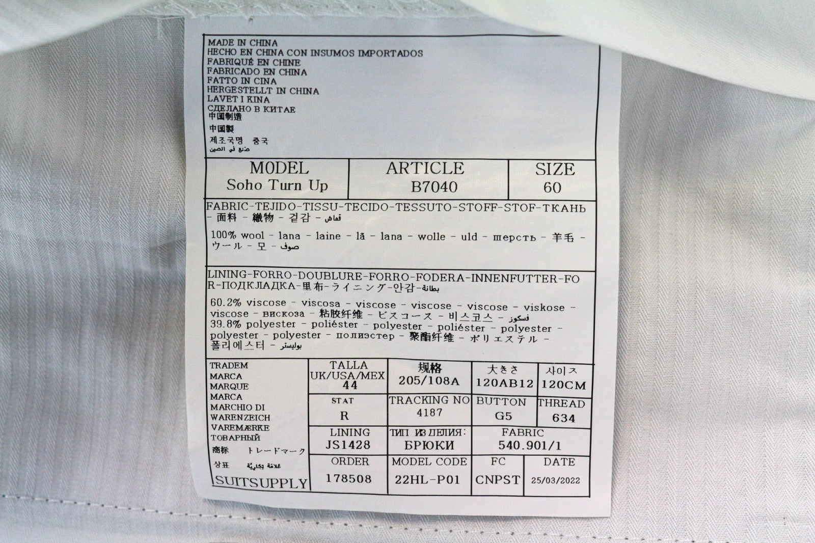 SUITSUPPLY Soho Turn Up Men's Trousers UK44R Grey Melange Wool Flat Slim Front