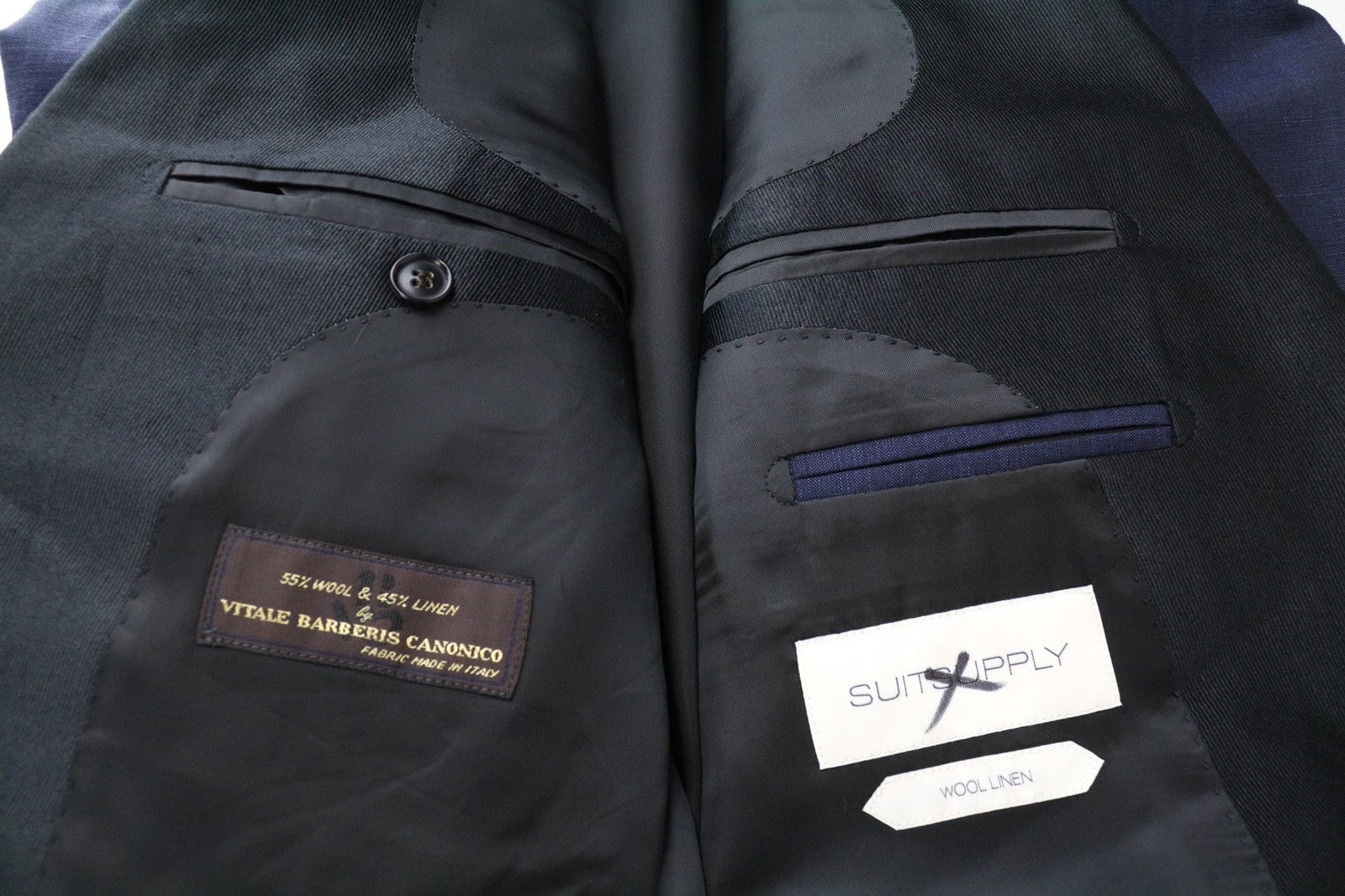 SUITSUPPLY Verona Men's UK38R Navy Blue Wool Linen Tuxedo Blazer Slim Melange