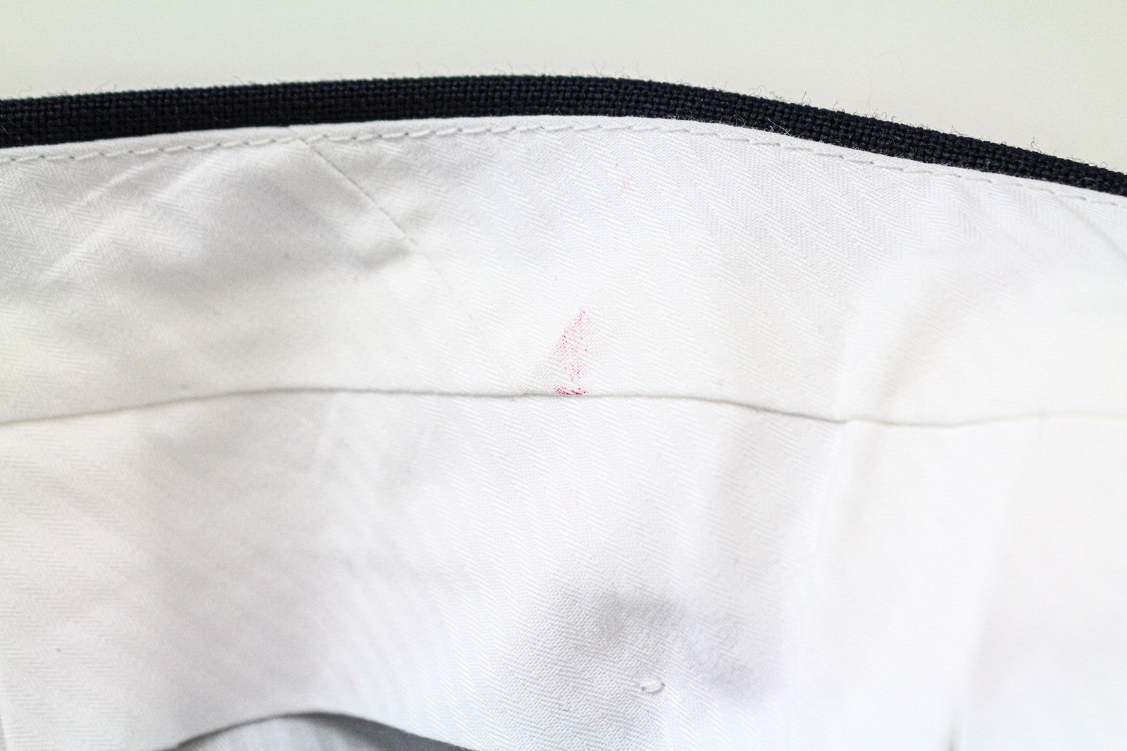 Used. Mended hems and waistline. Stained on the inside. Please see added photos.