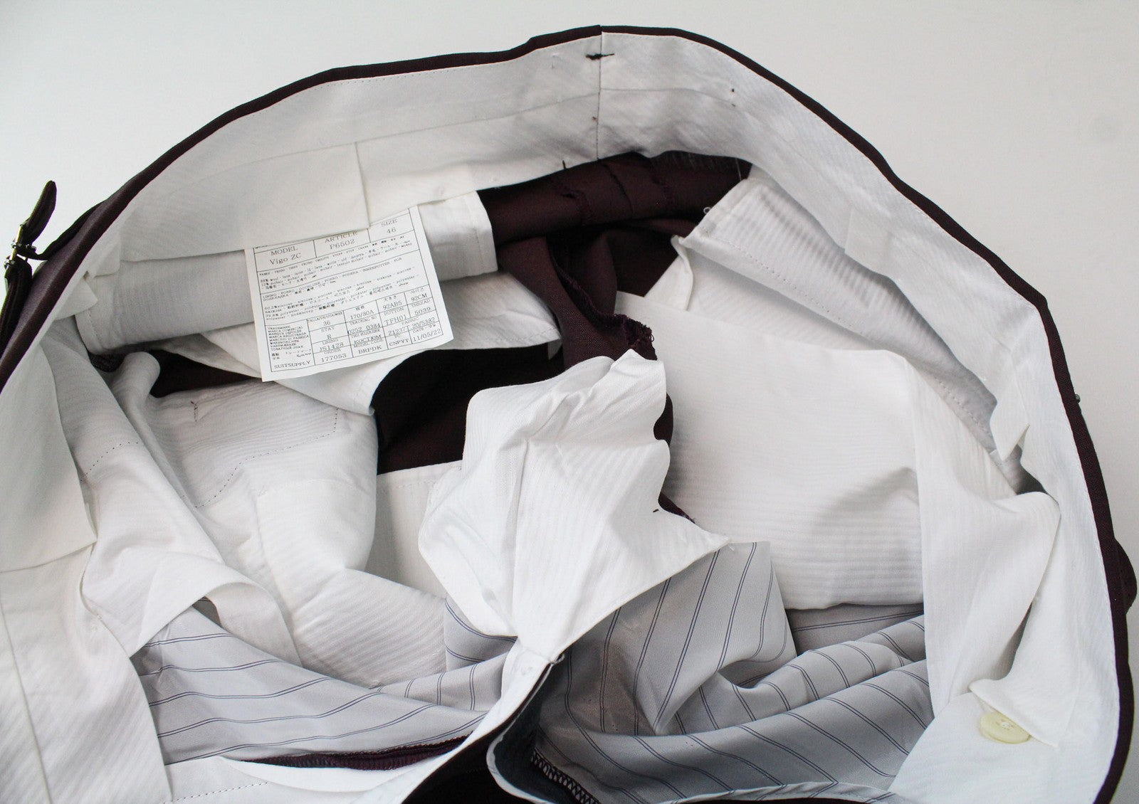 „SUITSUPPLY Vigo“ vyriškos UK36R kelnės su violetinėmis vilnonėmis moheros kelnėmis, klasikinėmis klostuotomis priekinėmis dalimis.
