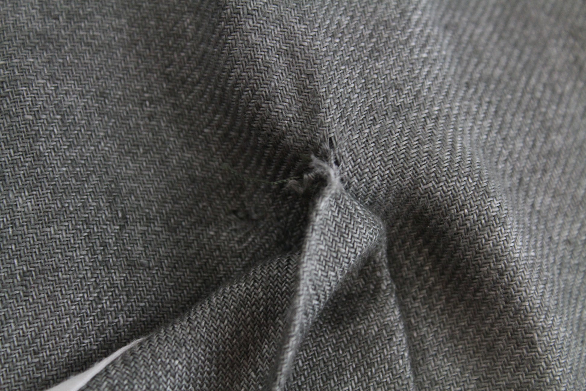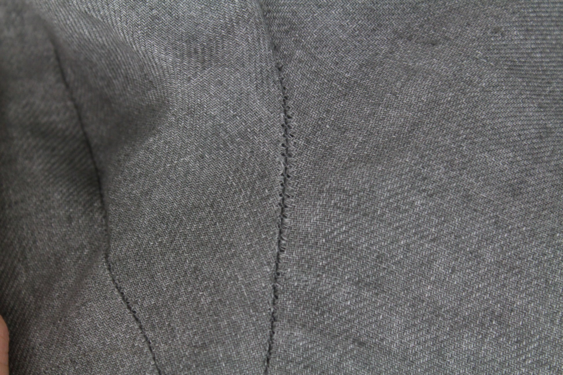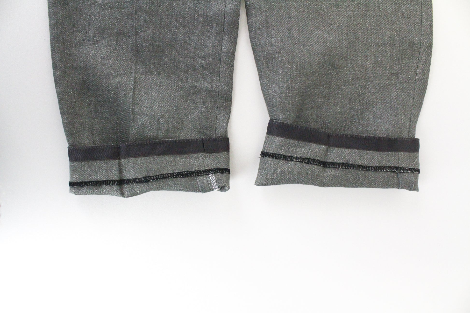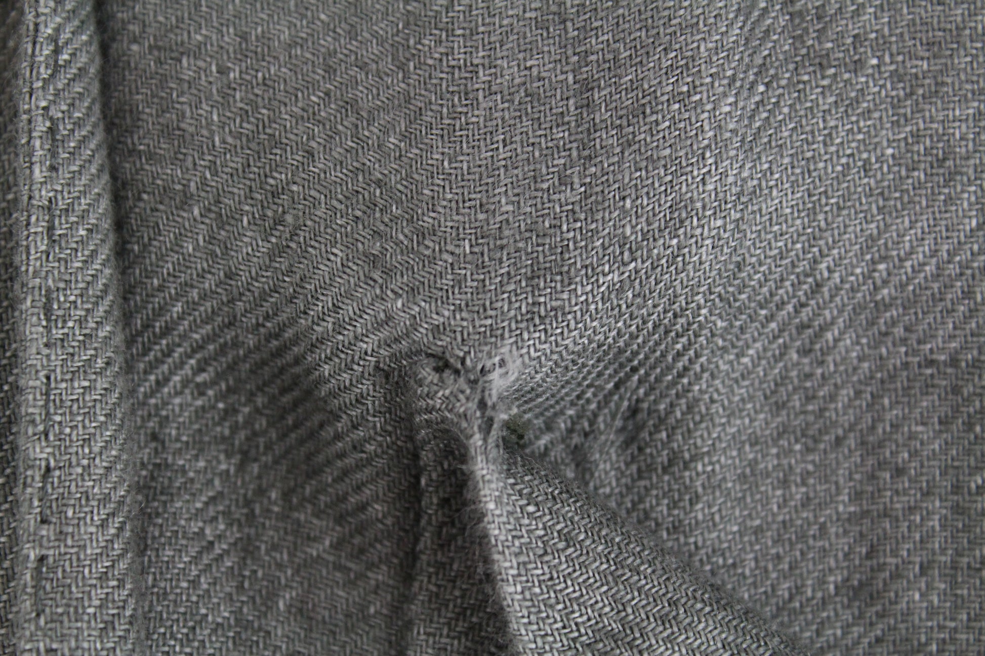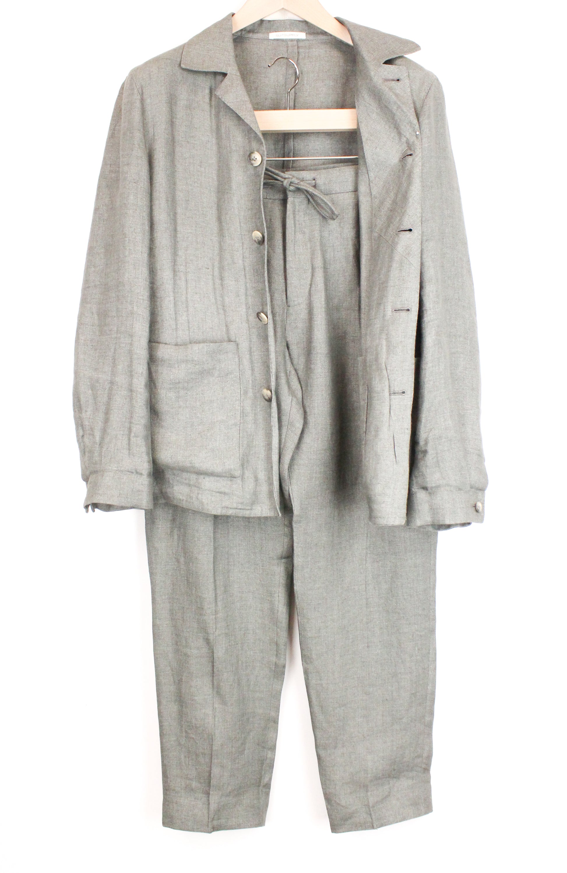 Used. Mended hems, small tear in the left leg. Stretched seams and tears on the blazer. Please see added photos.