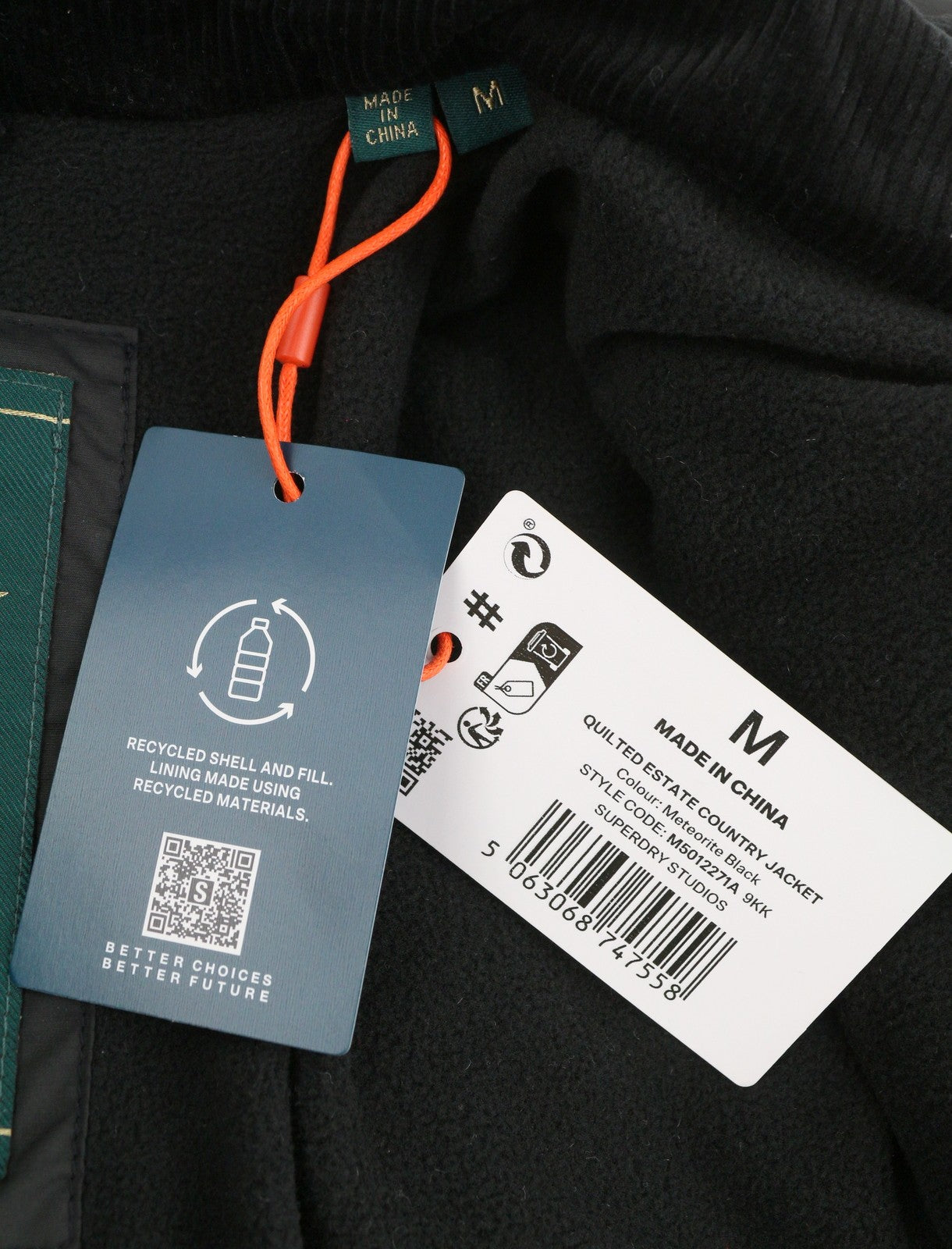 SUPERDRY Quilted Estate Country Men Jacket M Black Snap Buttons Lightweight