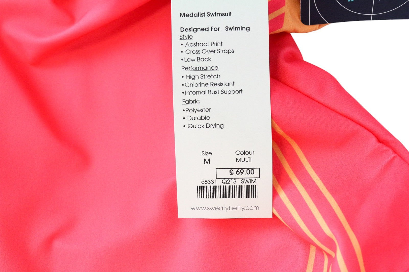 „SWEATY BETTY Medalist“ moteriškas rožinis vientisas maudymosi kostiumėlis su kryželiu nugaroje M dydžio