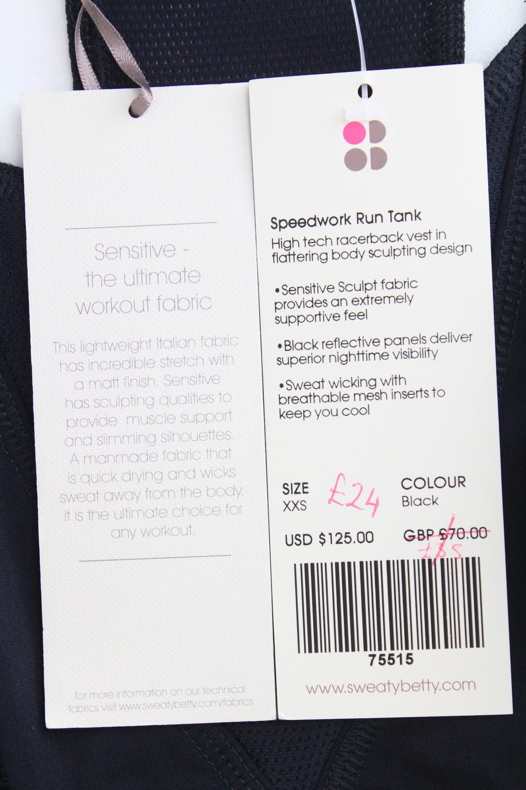 SWEATY BETTY Speedwork Women's 2XS Tank Top Black Racerback Stretch Activewear