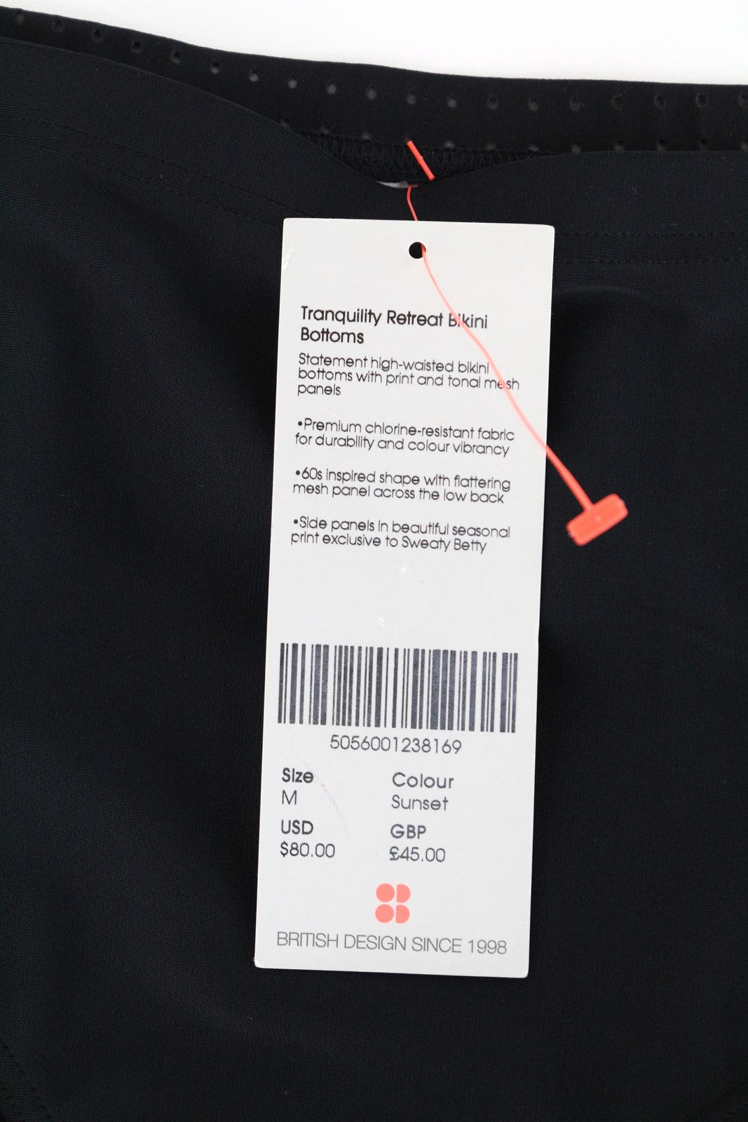 SWEATY BETTY Tranquility Retreat Swimwear M Black High-Waist 60s Bikini Bottom