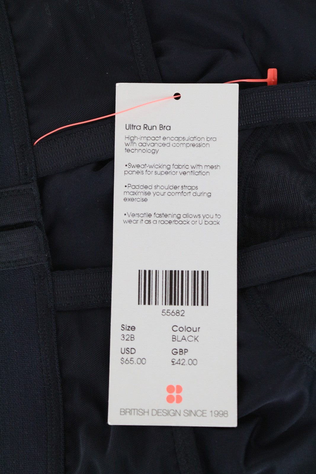 SWEATY BETTY Ultra Run Women Sport Bra 32B Black Gym Adjustable Straps Mesh