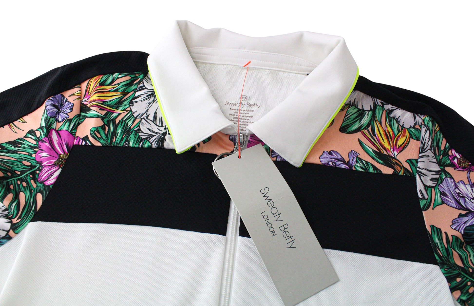 SWEATY BETTY Volley moteriška suknelė XS dydžio teniso suknelė, balta, gėlėta, tampri sportinė apranga