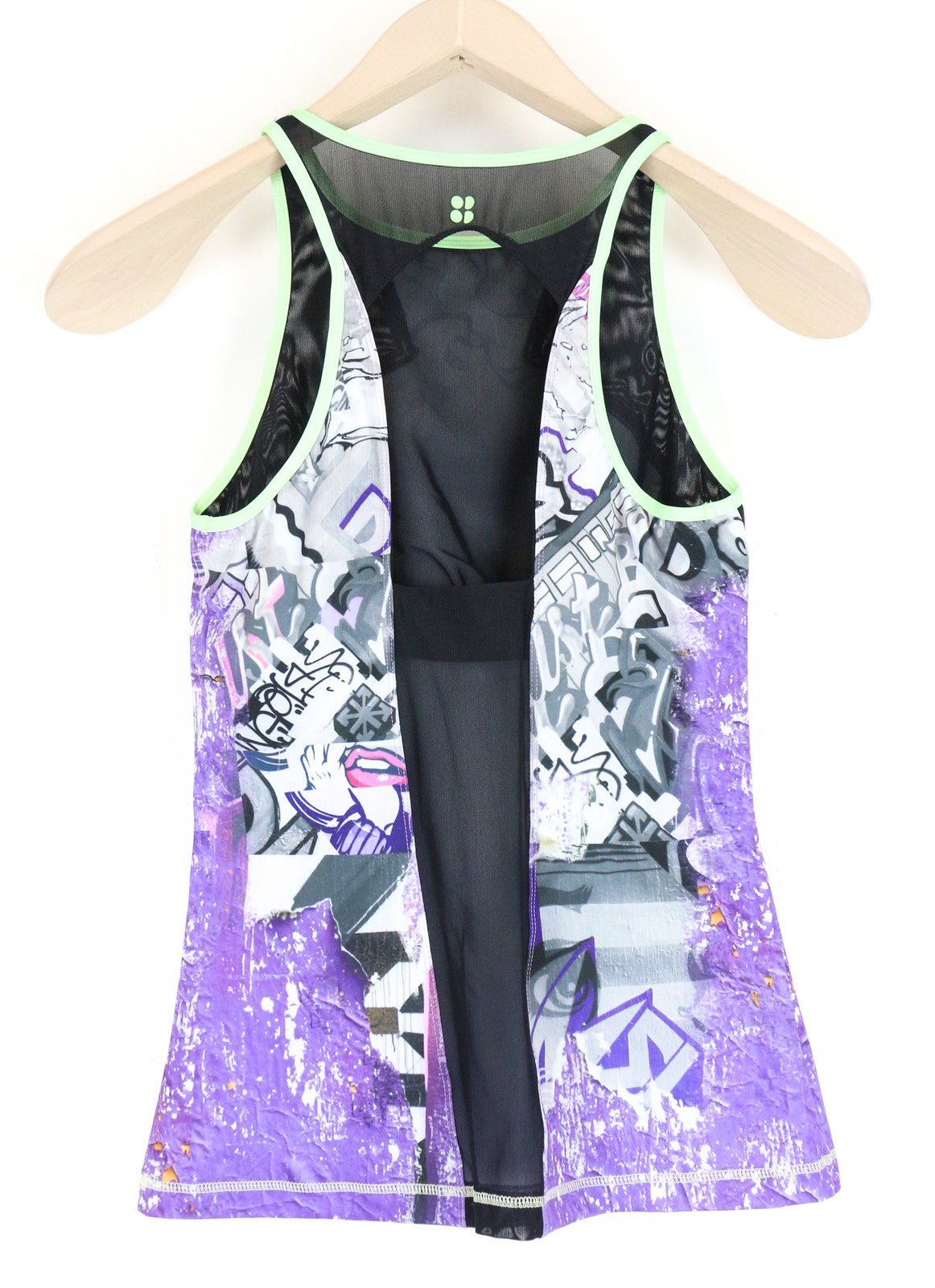 „SWEATY BETTY XS“ violetinė berankovė sportinė palaidinė su raštais
