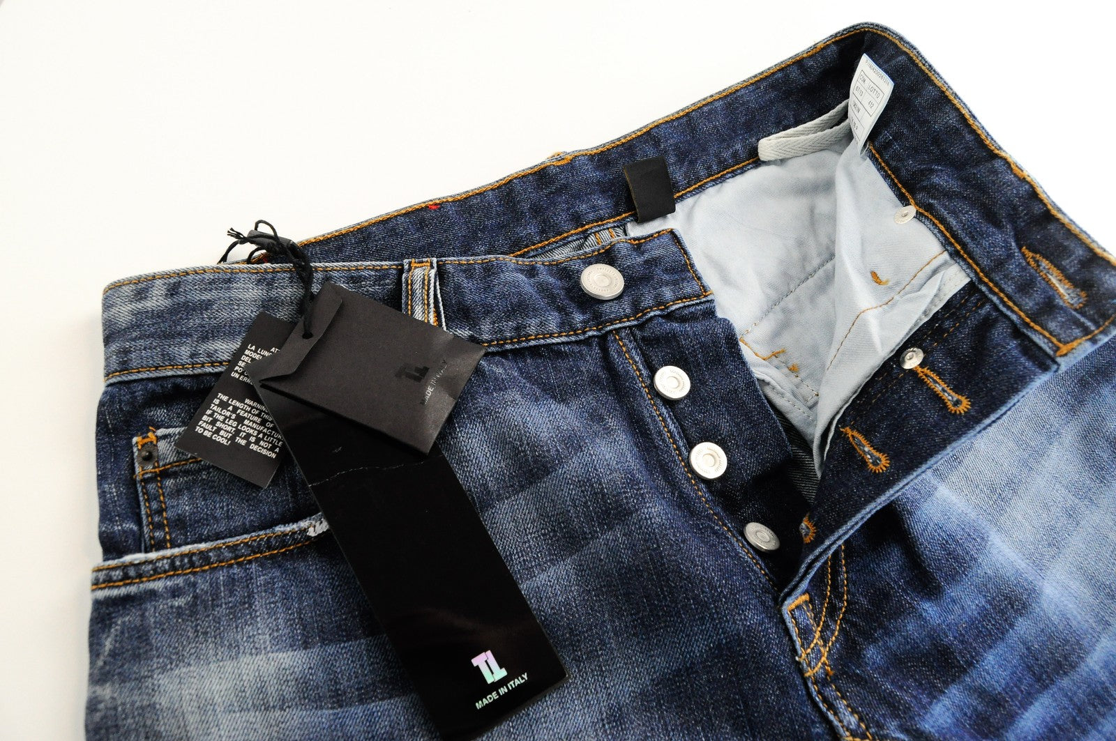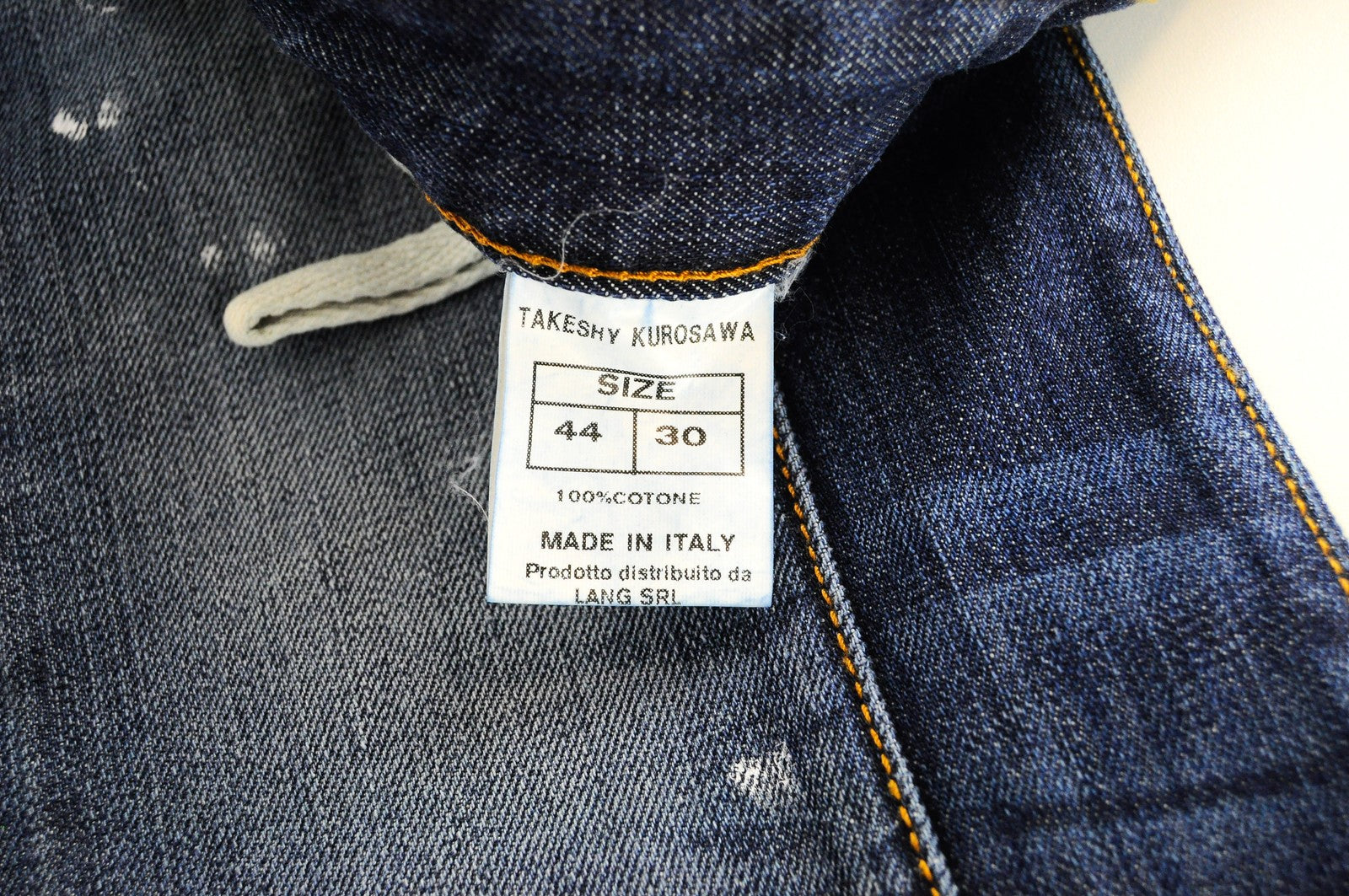 TAKESHY KUROSAWA vyriški mėlyni medvilniniai džinsai, skalbti, su 5 kišenėmis, W30 dydis