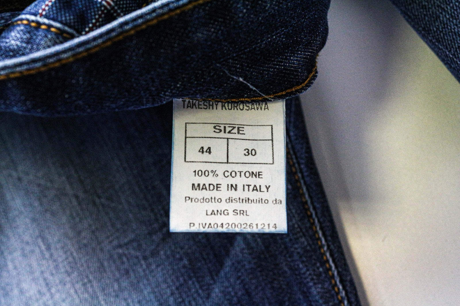 TAKESHY KUROSAWA Men's W30 Slim Blue Cotton Distressed Aged Look Washed Jean