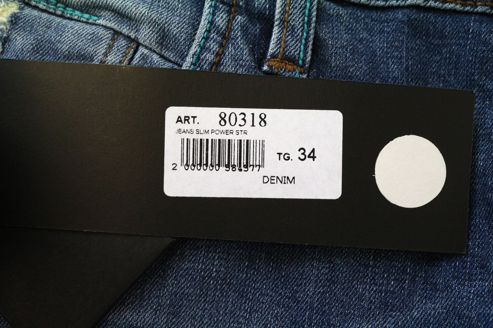 TAKESHY KUROSAWA TK 75 vyriški džinsai W34 mėlyni, apdriskę, ploni, tamprūs, su sagomis