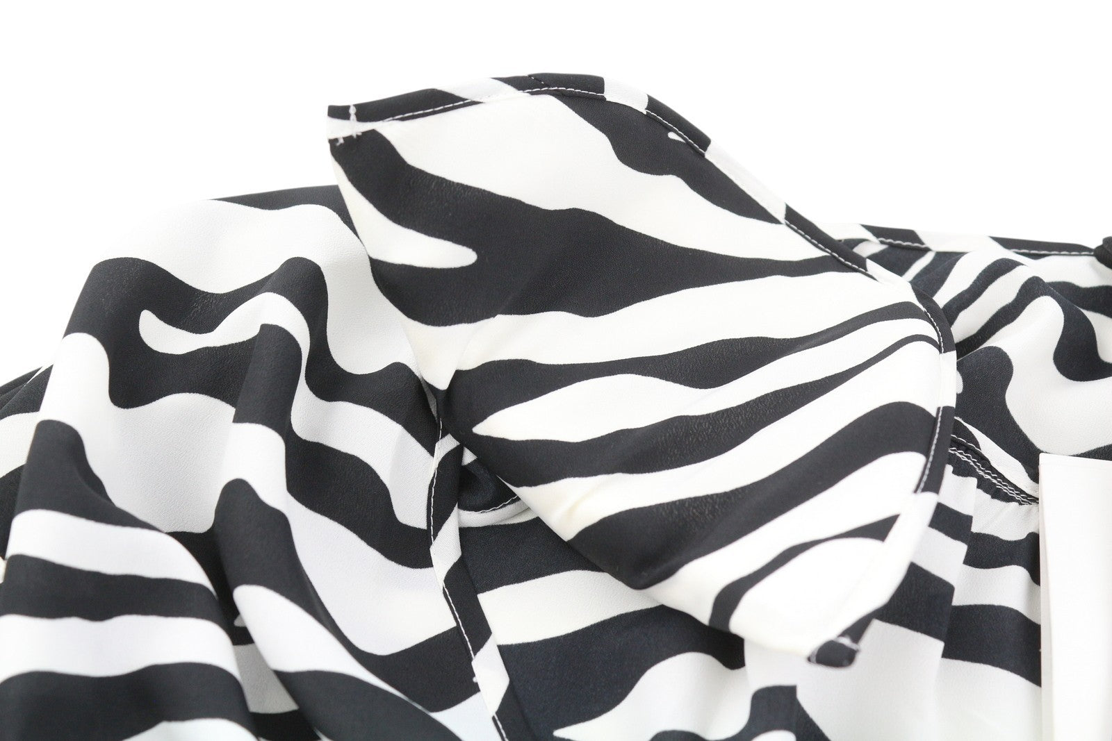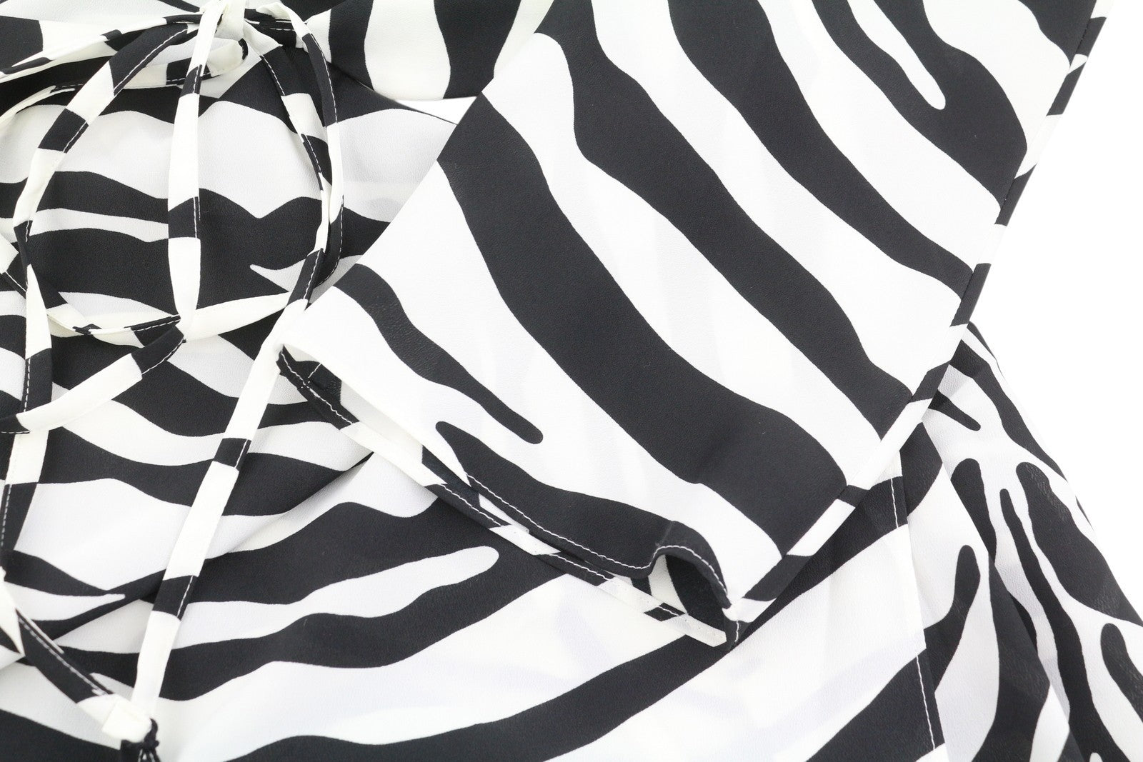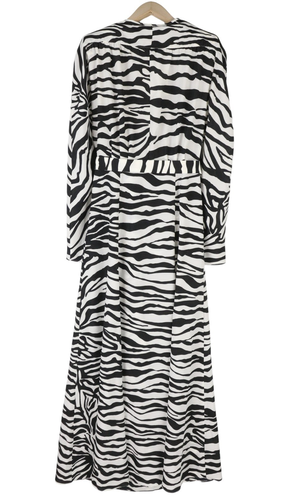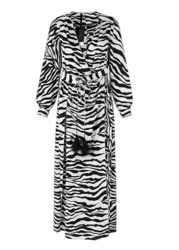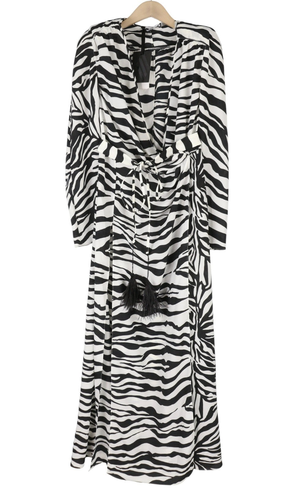 THE ATTICO moteriška suknelė 42 ilgomis rankovėmis, zebro rašto, su diržu, krepinė, apvyniojama maksi suknelė, RRP1199