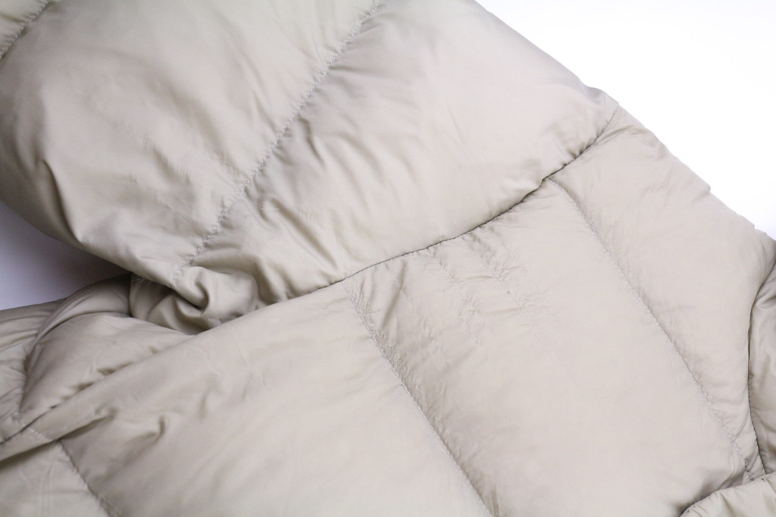 THE NORTH FACE NF0A5GDF Vyriška pūkinė striukė su gobtuvu S dydžio, su 700 fill užpildu, šviesiai ruda, su pamušalu