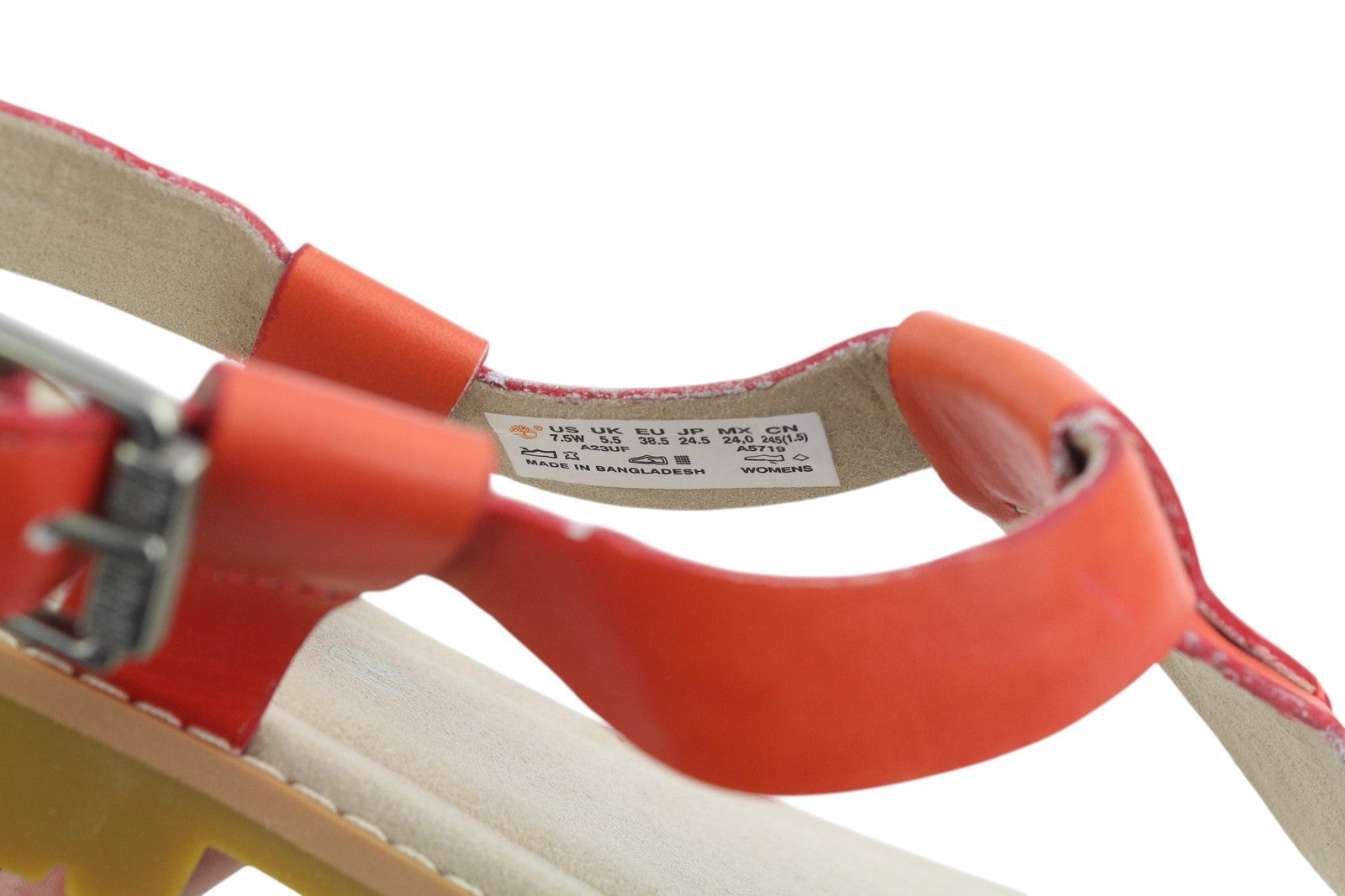 TIMBERLAND A23UF moteriškos basutės, 38,5 dydžio, oranžinės spalvos, odinės atviros nosies, plokščiapadžiai logotipai, laisvalaikio stiliaus.